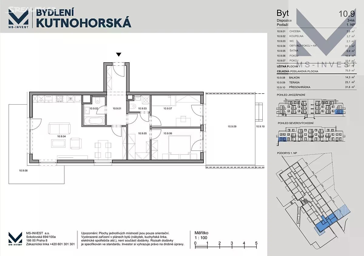 V rámci developerského projektu Bydlení Kutnohorská vznikne 29 bytových jednotek o dispozicích 1+kk až 3+kk a 38 řadových rodinných domů. K bytům náleží předzahrádka, balkon či střešní terasa. Výstavba je zahájena v září 2025, dokončení je naplánováno na červen roku 2027. K prodeji nabízíme prostorný byt 3+kk s terasou a předzahrádkou. V ceně bytu je již zahrnut sklep. Možnost dokoupení garážového stání. Pro více informací nás, prosím, kontaktujte.