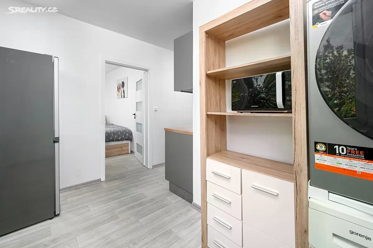 Moderní byt s lodžií Nabízíme Vám k pronájmu kvalitně zrekonstruovaný byt 3+1 s lodžií v panelovém bytovém domě v ulici Gagarinova v Liberci. Samotný byt se nachází ve 4. NP tohoto kompletně zrevitalizovaného bytového domu na dobrém a strategickém místě. Nespornou výhodou bytu je dobře řešená dispozice, světlost, kvalitní zpracování a lodžie. K dispozici je sklepní kóje v suterénu domu a bezproblémové parkování. Dispozice a příslušenství Dispozice bytu je 3+1 + lodžie a sklepní kóje Výměra bytu 63 m2 Nachází se ve 4. NP Standardy a interiér Při vstupu do bytu, přes bezpečnostní protipožární dveře, se ocitnete v předsíni, kde Vás zaujme pěkně sladěný a světlý interiér. Po pravé straně je komora na uskladnění věcí a případně využitelná jako botník a šatna. V předsíni je dále prostor pro další vestavnou šatní skříň. Výhodou je dobře rozvržená dispozice se samostatnou kuchyní a prostorem pro jídelní část. Po celé ploše bytu je vinylový podlaha ve světle šedé barvě, kterou doplňují bílé interiérové dveře s matně černou klikou. V obývacím pokoji je dostatek prostoru pro velký rohový gauč, TV stěnu s nábytkem, ale i případnou pracovnu nebo jídelní část. Z této místnosti je vstup do lodžie s jižní orientací a pěkným výhledem na Ještěd. K dispozici jsou další dva samostatné pokoje. Větší je aktuálně využíván jako dětský pokoj, kde je dostatek prostoru pro dětskou, ale i manželskou postel, dvě vestavné šatní skříně a další nábytek. Druhý pokoje je menší a jeho výměra je 9,5 m2. Orientace tohoto pokoje je na severní stranu, což bývá pro ložnici vždy ideální. Ve oknech jsou osazeny vnitřní žaluzie. Designová kuchyňská linka je kompletně vybavena spotřebiči (myčka, horkovzdušná trouba, digestoř, plynový sporák) a lednice je samostatně stojící. Nejhezčím prvkem celého bytu, je jistě koupelna, která má obklady v imitaci betonu a je vkusně doplněna o matně černé doplňky, jako jsou: walk-in sprchový kout, sprchový systém, žebříkové topení a další. Povedené je i kulaté podsvícené LED zrcadlo. Technické údaje Vytápění a ohřev vody zajištěno dálkově. Byt je po kompletní rekonstrukci včetně rozvodů elektřiny. Lokalita a doprava Ulice Gagarinova se nachází v městské části Rochlice v Liberci na sídlišti zvaném "Gagarinka. Jedná se o oblíbené místo pro bydlení v klidné části se strategickým umístěním a skvělou občanskou a dopravní dostupností. Kousek od domu je autobusová a tramvajová zastávka MHD. Za 10 minut se dopravíte do centra města. Nájemné a služby Nájemné | 18.000 Kč Zálohy na služby | 1.781 Kč Elektřina na nájemce cca. 1.500 Kč pro rodinu Finanční jistina 30.000 Kč Provize 18.000 Kč Informace Byt je k nastěhování od 1.12.2025. Při podpisu smlouvy je nutné uhradit první nájemné včetně služeb a finanční jistinu. Energetická náročnost budovy je C.