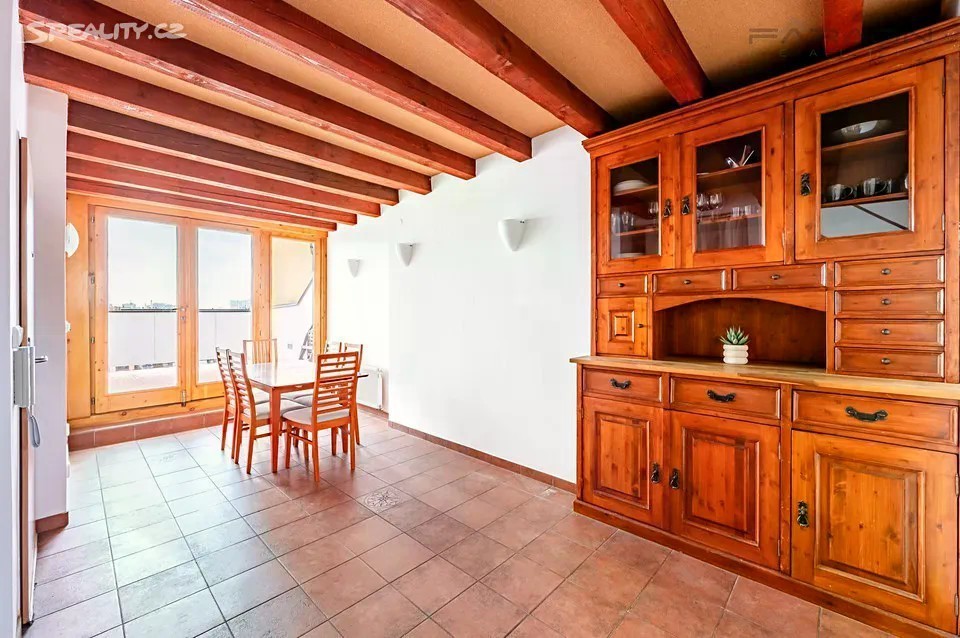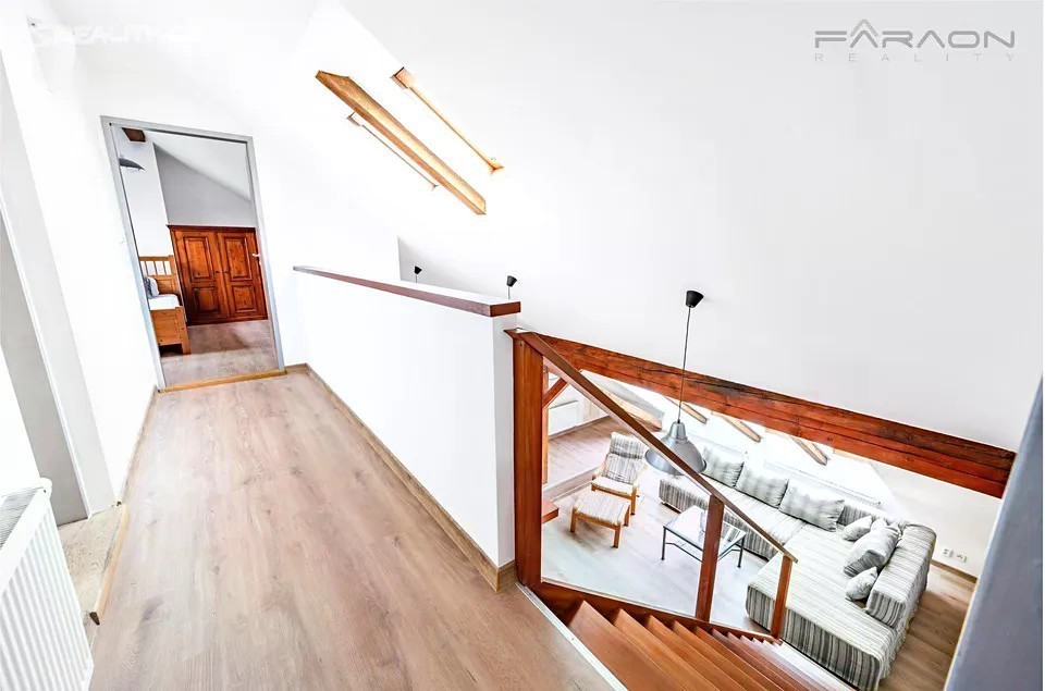Prostorný, tichý mezonetový byt 3+kk, o ploše 132 m2, s terasou 12 m2, situovaný v posledních dvou podlažích činžovního domu s menším výtahem, na pražském Žižkově. Místo se skvělou dostupností do centra města a v blízkosti hned 3 velkých parků. Ve spodním patře bytu se nachází vstupní hala, otevřený koncept kuchyně s obývacím prostorem a jídelní částí, dále pracovní kout a vstup na východně orientovanou terasu. V horním patře bytu jsou 2 ložnice, koupelna s wc, vanou, sprchou a pračkou. Byt se pronajímá zařízený, viz. foto. Kuchyně je vybavena nádobím a všemi spotřebiči - myčka, sklokeramická deska, trouba, digestoř, lednice. V ložnici je manželská postel, druhý pokoj může sloužit jako ložnice, šatna či pracovna. V bytě je dostatek úložných prostor. Nábytek vyrobený na zakázku, z masivu exotického dřeva, vhodně dotváří atmosféru přiznaných tesaných trámů v interiéru, s dřevěným schodištěm. Skvělá lokalita v blízkosti centra i přírody, jen pár kroků od tramvajové zastávky "Lipanská" a stanic metra "Jiřího z Poděbrad" a "Flora". Parkování v modré zóně u domu. V okolí se nachází mnoho vyhlášených restaurací a kaváren, Žižkovský vysílač, supermarket Albert nebo parky Parukářka, Vítkov a Riegrovy sady. V prostorách domu i bytu platí zákaz kouření. Určeno výhradně pro zájemce o dlouhodobý pronájem, bez domácích mazlíčků! Kauce 50.000 Kč. Provize RK ve výši 1 nájmu + DPH. K dispozici ihned.