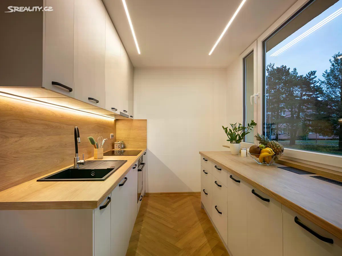 Nabízím k prodeji byt 3+1 v osobním vlastnictví o velikosti 70 m² s balkonem, v 1. patře sedmipodlažního domu. Byt je orientovaný na východ a západ, takže je plný světla po celý den. Byt prošel kompletní, nadstandardní rekonstrukcí. Vše bylo dělané s důrazem na kvalitu, estetiku a akustický komfort - od nových rozvodů a omítek po okna s trojskly a odhlučněné příčky. Součástí úprav je: • nová elektroinstalace, SDK podhledy a rozvody • okna s trojskly a předstěna u příčky k sousedům pro dokonalé ticho • kvalitní vchodové dveře s akustickou izolací • klimatizace Daikin • vinylová podlaha v dekoru rybí kosti • kuchyň na míru a posuvné dveře pro úsporu prostoru Interiér působí elegantně, útulně a klidně. Díky výhledu do zeleně a skvělému odhlučnění si tu můžete opravdu odpočinout - i když jste na sídlišti. Byt je ideální pro pár nebo mladou rodinu, která hledá moderní, hotové bydlení bez dalších investic. V okolí najdete vše potřebné - obchody, školu, školku, restaurace, dětská i workout hřiště a dostatek zeleně. Pokud hledáte byt, který byl rekonstruován s péčí a smyslem pro detail, rádi vás přivítáme na osobní prohlídce.