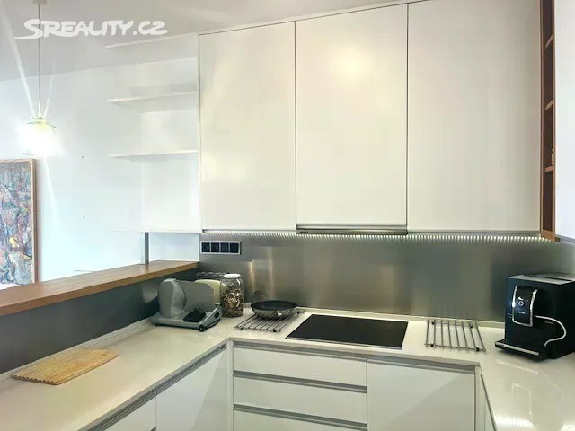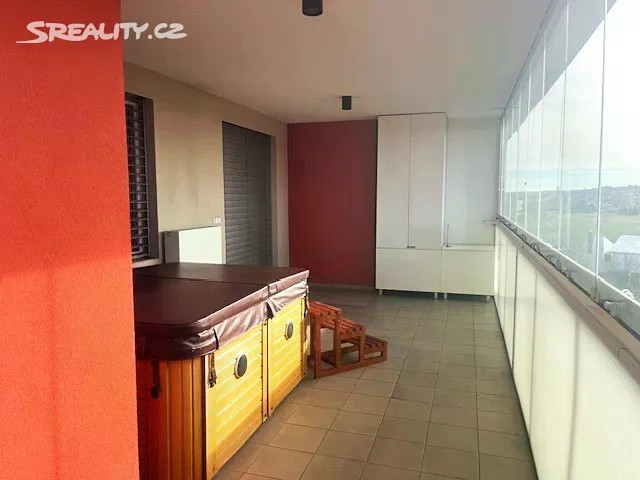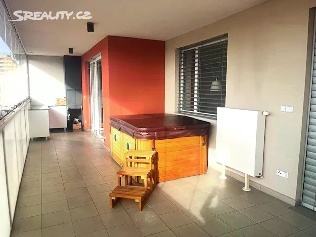Exkluzivní prodej moderního bytu, který poskytuje naprosté soukromí, a to hlavně díky tomu, že se nachází v nejvyšším patře domu. Celková užitná plocha bytu činí 108m2. Byt Vás zaujme promyšleným designem a praktičností. Nemovitost byla již při výstavbě řešena podle požadavků majitele, který kladl důraz na každý detail a pečlivě dbal na vybrané materiály. Z toho důvodu také při návrhu bytu využil služeb architekta. Ten vnesl do bytu elegantní styl, který podtrhuje nábytek na míru v celém interiéru. Důležitou součástí bytu je vytápěná zimní zahrada o rozloze 26m2, jejíž zasklení systémem Optimi a rolety Sunrol lze používat dle potřeby. Vzhledem k tomu, že se byt nachází v nejvyšším patře, bylo možné na terasu nainstalovat gril a do obývacího pokoje krbová kamna. Terasu lze nechat uzavřenou nebo zcela otevřít. Rovněž je možné ji celou zastínit proti slunci. Součástí terasy je venkovní gril s posezením, vestavěné skříně na míru a vířivka. Je možné zde umístit i saunu. Toto zázemí vám poskytne dostatek prostoru pro každodenní relaxaci. Vstup na terasu je jak z obývacího pokoje, tak i z ložnice. Další výhodou bytu je prostorná šatna, jejíž součástí je nejen pračka se sušičkou, ale i vinotéka. Ložnice má přímý vstup do koupelny, do které je možnost vstupu i z předsíně. WC je samostatné. Podlaha je v obytných místnostech dubová a v ostatních prostorách je na podlaze položená velkoformátová dlažba. Okna v bytě disponují předokenními hliníkovými žaluziemi. Byt je plně klimatizovaný a má velmi nízké provozní náklady do 4 500,- Kč za měsíc. V případě zájmu lze přikoupit garážové stání v suterénu, odkud se výtahem dostanete rovnou do nejvyššího patra. Ve stejném suterénu je i vlastní zděná sklepní kóje. Veškeré občanské vybavení je v docházkové vzdálenosti a 15min od centra města.