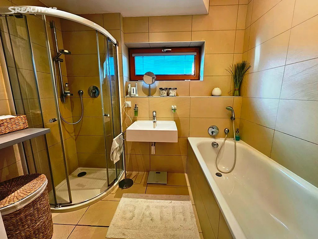 Prodej bytu na okraji starých Záběhlic navazující na starší zástavbu v klidné lokalitě. Jedná se o developerský projekt "Byty na statku" dům byl postaven v roce 2009. Jedná se o bytový dům o čtyřech bytových jednotkách. Dispozice: předsíň 6,32 m2 obývací pokoj s kuchyní 21,44 m2 WC + bidet 3,40 m2 koupelna vanou i sprchový koutem 5,22 m2 ložnice 16,07 m2 sklep 5,70 m2 terasa 13,07 m2 garážové parkovací stání pro 1 automobil Byt je nadstandardně vybaven, má dřevěná eurookna, vstupní proti požární dveře, vnitřní bílé - převážně prosklené, podlahová krytina - dubové parkety + dlažba, Koupelna je vybavena ocelovou vanou, sprchovým koutem, umývadlem. WC je samostatné se závěsnou mísou, umývátkem a bidetem. Vytápění je ústřední, otopná tělesa Korado Radik, konvektory před vstupem na terasu. Kuchyňská linka vč. spotřebičů. Dle dohody lze přenechat některé vybavení. Z bytu je výhled přes potok do zeleně rozsáhlého přírodního parku. Velmi dobré dopravní spojení i občanská vybavenost v místě. U domu je autobusová zastávka - 10 min. na metro Skalka, vlak Zahradní Město 5 min. PENB Třídy C.