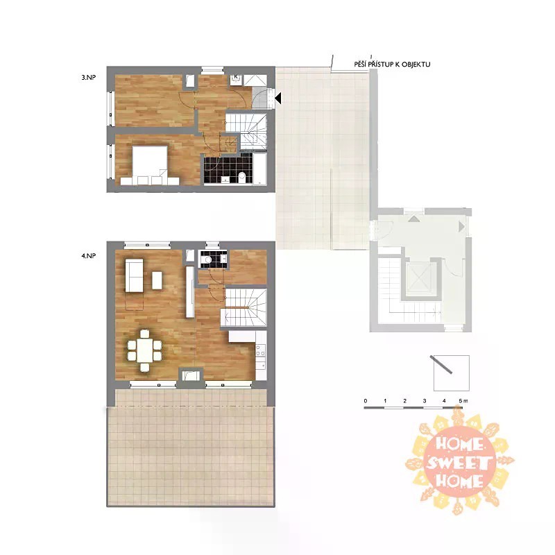 Nabízíme k pronájmu prostorný mezonetový byt o dispozici 3+kk a užitné ploše 84,8 m², nacházející se v novostavbě z roku 2014 v klidné ulici Stará Cesta v Braníku. Byt se rozprostírá ve třetím a čtvrtém patře budovy. V nižším podlaží jsou dvě samostatné ložnice, koupelna vybavená vanou a WC. V horním patře se nachází prostorný obývací pokoj propojený s moderní kuchyňskou linkou. Díky francouzským oknům je v této části bytu dostatek přirozeného světla a přímo z obývacího pokoje je vstup na jižně orientovanou terasu s výhledem na Branickou skálu. Terasa je dostatečně velká pro posezení s rodinou či přáteli. V tomto podlaží je dále samostatné WC a oddělený úložný prostor, který lze využít například jako spíž či šatní komoru. Součástí bytu je sklepní kóje. Lokalita bytu je mimořádně klidná, avšak zároveň velmi dobře dostupná. Ulice Stará Cesta plynule přechází v lesní stezku vedoucí k lesoparku na Branické skále, kde se otevírají krásné výhledy na Prokopské údolí, Barrandovské skály, Petřínskou rozhlednu či Hradčany s Pražským hradem. Okolí nabízí mnoho možností pro procházky, cyklistiku i in-line bruslení. V blízkosti se nachází kompletní občanská vybavenost včetně škol, školek, dětských hřišť a sportovních center. Milovníci golfu mohou navštívit nedaleký Golfový klub Hodkovičky. Pro zdravotní péči je k dispozici poliklinika s lékárnou, několik stomatologů a veterinárních ordinací. Dopravní spojení do centra Prahy je spolehlivé a rychlé. V docházkové vzdálenosti jsou zastávky tramvají čísel 2, 3, 17, 21 a 92, dále zde jezdí autobusy ********* a 501. Díky tomu se dostanete na Vyšehrad za několik minut, na Národní divadlo přibližně za deset minut, na Karlův most za patnáct minut a na Pražský hrad za zhruba dvacet minut. Cesta na Letiště Václava Havla trvá veřejnou dopravou přibližně padesát minut. K dispozici od: 1. 12. Nájemné: 37 800 Kč Poplatky: 4 700 Kč měsíčně, plyn a elektřina se převádí na nájemce. Jistota: 2 měsíční nájmy Garážové stání: 1 815 Kč měsíčně V případě zájmu o prohlídku nebo bližší informace neváhejte kontaktovat makléře. Byt je nabízen ve stavu bez vybavení.