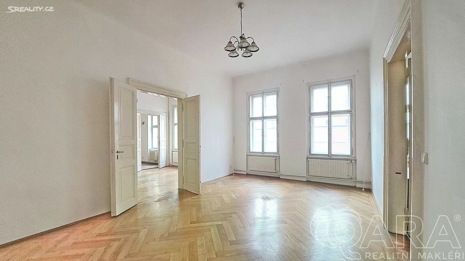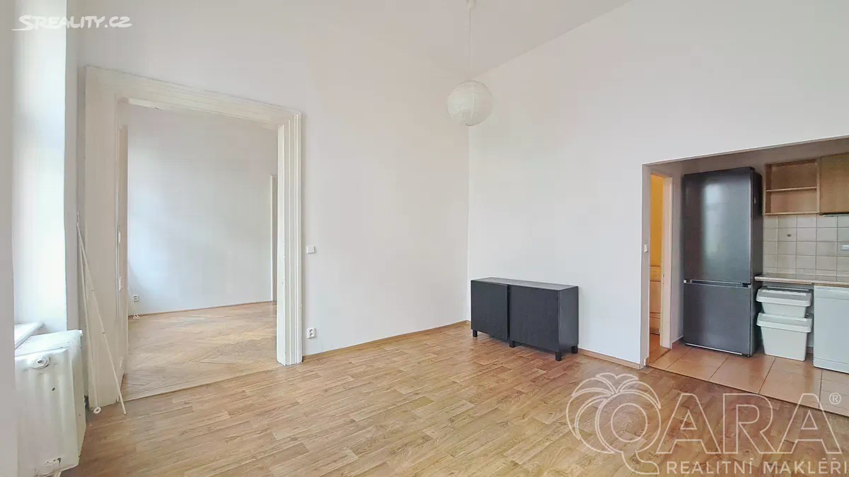 Nabízíme k pronájmu světlý a prostorný byt o dispozici 3+1 (případně 4+1 při započítání šatny s oknem) o celkové ploše 95 m², který se nachází ve 3. patře činžovního domu bez výtahu v samém srdci Prahy, v Hybernské ulic, přímo naproti Masarykovu nádraží. Byt je orientovaný na západ do klidného vnitrobloku, takže navzdory poloze v centru města nabízí příjemný klid. Dispozice: Z předsíně vedou dveře na samostatnou toaletu a do prvního z pokojů. Všechny pokoje jsou průchozí, což dává bytu vzdušnost a otevřenost. Byt je tak ideální pro pár nebo mladou rodinu. V bytě najdete plně vybavenou kuchyň, jejíž součástí je lednice, myčka, sporák se sklokeramickou deskou a je z ní i vchod do prostorné komory. Součástí bytu je i pračka a sušička. Koupelna je s vanou. V blízkosti domu je stanice metra B „Náměstí Republiky“, tramvajové zastávky, Masarykovo nádraží a obchodního centra Palladium. Náklady: Nájemné: 24 000 Kč / měsíc Zálohy: 2 000 Kč (voda, osvětlení a úklid společných prostor, svoz odpadu) Elektřina a plyn se přepisuje na nájemce (cca 4 000 Kč / měsíc) Kauce: 48 000 Kč Provize RK: 24.000 Kč