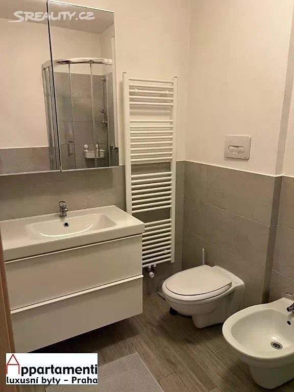 Pronájem kompletně zařízeného bytu 2+kk 41m2, dispozice předsíň, ložnice, kuchyňka zvlášť, obývací pokoj se sedačkou stolkem a židlemi, kompletně vybavená kuchyňská linka včetně myčky, koupelna se sprchovým koutem toaletou a bidetem. Nájemné 24.000,Kč/ měsíčně služby 1573,Kč + DPH / 1 osoba s tím, že u nájemníků z EU nebo s trvalým pobytem v ČR elektroměr a plynoměr převod na nájemníka, u nájemníků mimo EU paušál za el.+ plyn 3 500,Kč + DPH, kauce ve výši dvou měsíčního nájmu