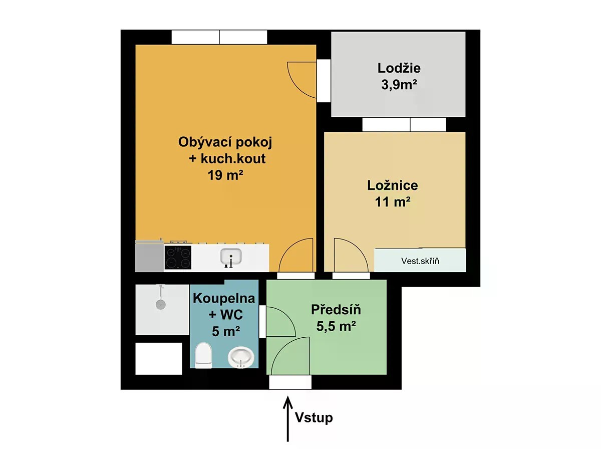 Pronájem 2+kk/lodžie/sklep, 44,4m2, 5.NP, možnost i garáž. stání, ul. Fabiánové, Praha Hlubočepy Exkluzivně nabízíme k pronájmu byt 2+kk s lodžií o celkové výměře 44,4m2, k bytu náleží sklep (cca 3,5m2) v 2.PP a můžete si pronajmout i garážové stání (+ 1.500Kč/měs) Byt je situovaný v 5.NP s orientaci na východ a je součástí novostavby kolaudované v září 2025, jde o první nájem. Vybavení bytu je ve vyšším standardu. K dispozici máte plně vybavenou kuchyňskou linku s vestavnými spotřebiči - lednice s odděleným mrazákem, myčka, indukční deska, mikrovlnná trouba, el. trouba, digestoř. Skvělá je i dispozice bytu (plánek bude přidán později nebo na vyžádání zašleme prac. verzi ). Pokoj s kuchyňským koutem o výměře 19m2 skýtá dostatek místa a je z něj přímý výstup na lodžii (3,9m2). V ložnici (11m2) je umístěna velká skříň. Okno je orientováno do klidné lodžie, což zajišťuje soukromí a ochranu před hlukem. Předsíň (5,5m2) skýtá dostatečně velký prostor pro umístění další velké skříně a zajišťuje tak obyvatelům dostatek úložného prostoru. Koupelna a WC jsou společné (5m2), k dispozici je velký sprchový kout, umyvadlo a osvětlené zrcadlo. Najdeme zde i přípravu na připojení pračky a sušičky, což je příjemný bonus. Ulice Fabiánové se nachází v klidné části Prahy 5 - Hlubočepy, v sousedství přírodního parku Prokopské údolí. Jde o velmi příjemnou rezidenční lokalitu, která nabízí jak výbornou dostupnost do centra, tak kompletní občanskou vybavenost v docházkové vzdálenosti. Občanská vybavenost: • v okolí se nachází mateřská a základní škola, • supermarkety, menší obchody, restaurace, lékárna, pošta, bankomaty, • poliklinika Barrandov a další služby v dosahu několika minut, • v blízkosti také sportoviště, cyklostezky a zeleň Prokopského údolí - ideální pro aktivní odpočinek. • V pěší vzdálenosti najdete také Radotínsko-Chuchelský háj s malou lesní zoo - perfektní místo pro relaxaci i volnočasové aktivity celé rodiny Dopravní spojení: • tramvajová zastávka Náměstí Olgy Scheinpflugové (linky č. 4, 5, 7, 94) - cca 5 min pěšky, • autobusové linky směr Smíchovské nádraží a Barrandov, • železniční stanice Praha-Hlubočepy s přímým spojením na hlavní nádraží, • rychlý nájezd na Barrandovský most a Pražský okruh, • do centra (Anděl / Smíchov) se dostanete cca 15-20 minut Lokalita nabízí skvělé spojení městského komfortu a klidného bydlení v zeleni. Díky výborné dopravní dostupnosti a kompletní občanské vybavenosti jde o velmi vyhledávanou rezidenční oblast Prahy 5. Prohlídku bytu doporučujeme a rádi zprostředkujeme.