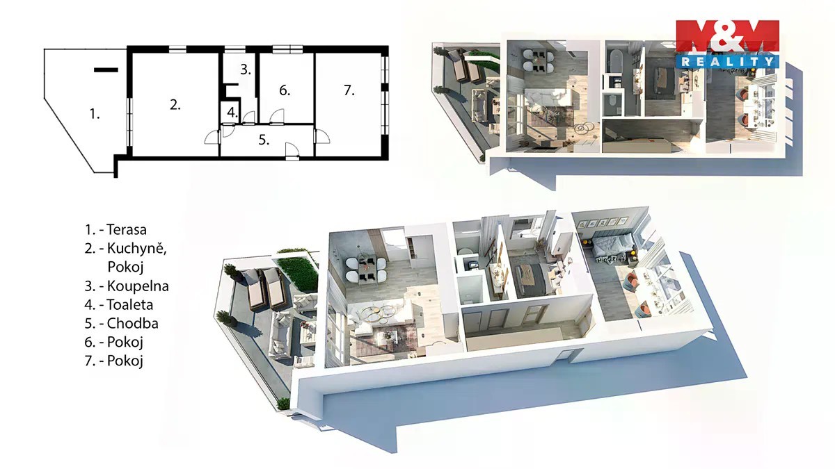 BYT 3+KK S TERASOU. Exkluzivní byty v srdci Mladé Boleslavi - Projekt MB Husova - se nachází v centru města, jen pár kroků od parku Výstaviště, s prostornými terasami u každého bytu. DOKONČENÍ PROJEKTU V LISTOPADU 2025. Tento byt s dispozicí 3+kk disponuje celkovou plochou 87,88 m2 a nabízí vlastní terasu, která poskytuje prostor pro relaxaci. Dům je postaven z nadstandardních materiálů a výhodou je také pouze jeden soused na patře. Součástí ceny je sklep, možnost dokoupit kryté garážové stání. Zajistěte si mimořádně úsporné bydlení v centru města - k dispozici je zde celkem 8 bytových jednotek. S financováním Vám pomůže naše hypoteční specialistka - nyní stačí 12 % z kupní ceny, zbytek až po kolaudaci. Nepropásněte tuto jedinečnou příležitost a kontaktujte nás. Těšíme se na Vás!
