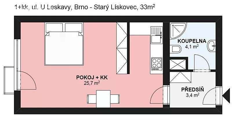 Pronájem bytu 1+kk 33 m² U Leskavy, Brno - Starý Lískovec