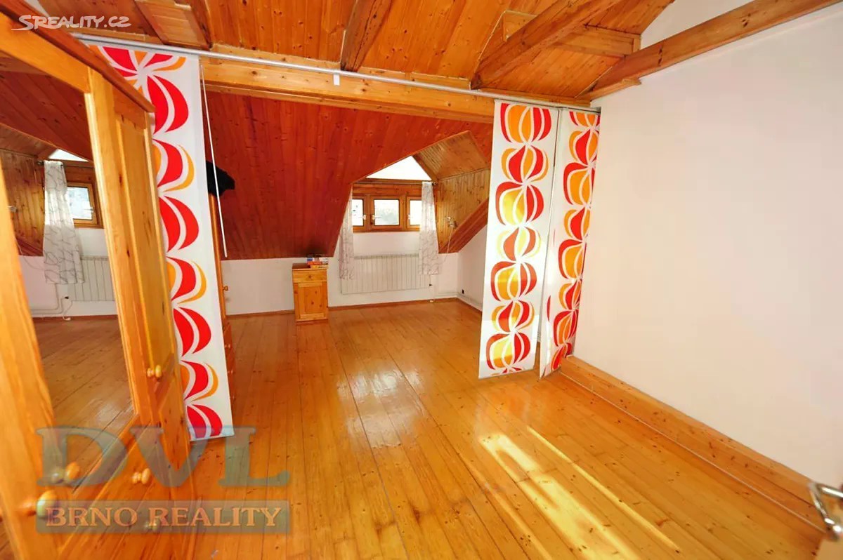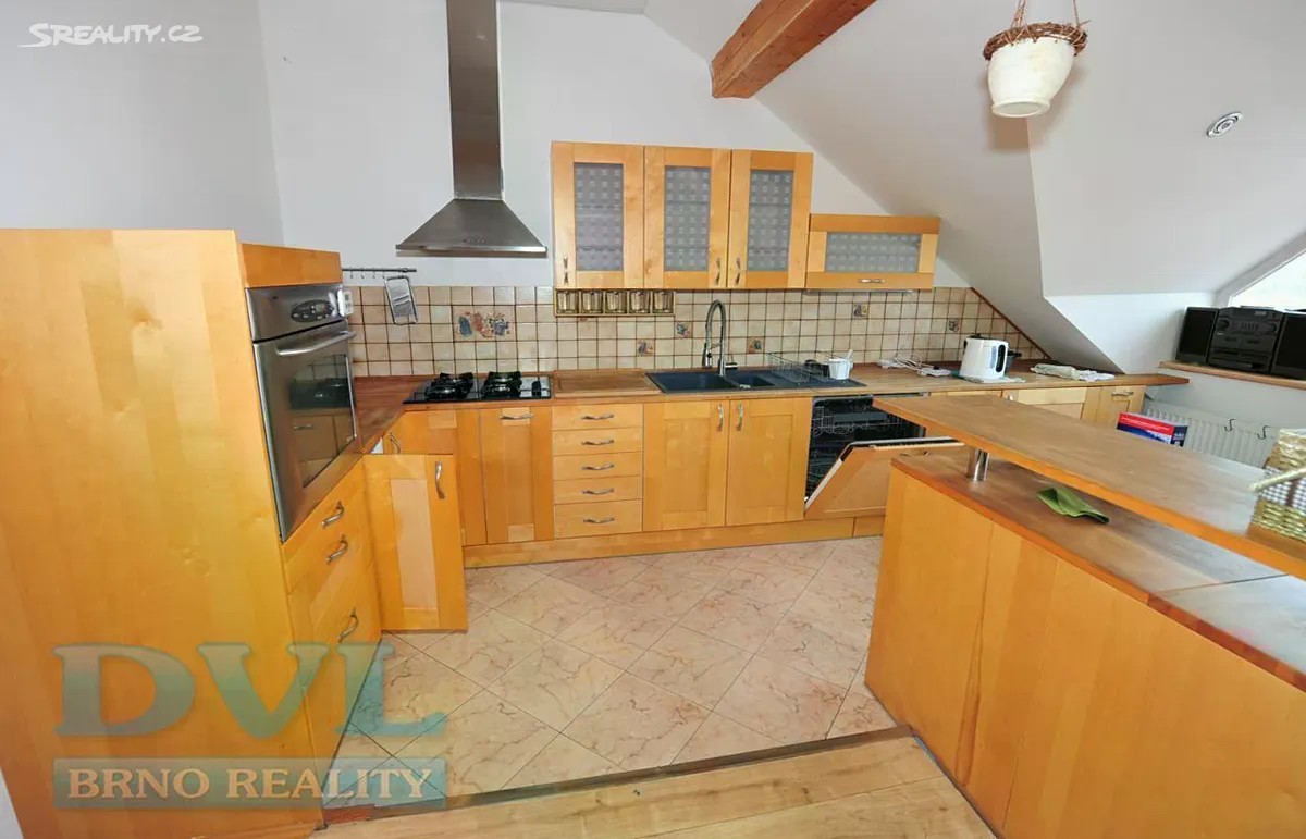 Brno - Královo Pole, Mojmírovo náměstí - prodej bytu 4+KK. Pěkný cihlový dům po revitalizaci, bez výtahu. Prostorný mezonetový byt v 5. patře, plocha je 121 m2. Součástí je terasa 7,3 m2 a sklep 5,63 m2. V prvním podlaží bytu je velký obývací pokoj s kuchyňským koutem, dvě ložnice, šatna, předsíň, koupelna s vanou a WC, druhá koupelna se sprchovým koutem a WC. Ve druhém podlaží bytu je místnost - galerie 16,6 m2. Byt je podkrovní s trámy, má však klasická okna s výhledem, nikoliv střešní. Vytápění bytu je vlastním plynovým kotlem. Cena 9.390.000 Kč je uvedena včetně provize RK (zahrnuje i právní servis). 4+KK 121 m2 terasa, sklep.