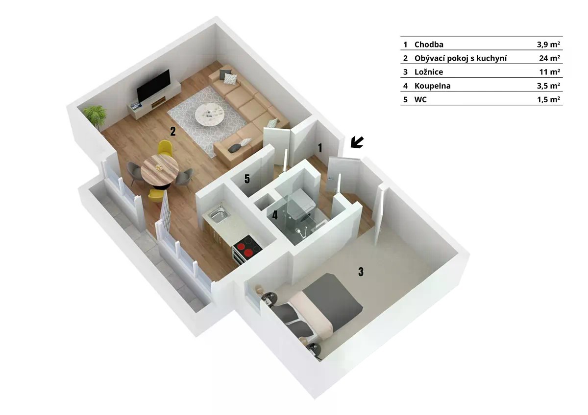 Nabízíme moderní byt 2+kk po rekonstrukci o celkové výměře cca 46 m² (včetně sklepa 1,5 m2 a balkonu 3,5 m2). Byt se nachází ve 4. patře cihlového domu na Mojmírově náměstí. Je velmi dobře dispozičně řešený, prosvětlený obývací pokoj s kuchyňským koutem a balkónem nabízí krásný výhled na Brno. Útulnou atmosféru dotváří nová masivní dubová podlaha. Byt je velké části zařízen (vybavená kuchyňská linka, lednička, pračka, skříně), zaujme také prostorným sprchovým koutem a protihlukovými bezpečnostními dveřmi. Dostatek úložného místa zajišťuje prostorná sklepní koje. Byt má plastová okna a nachází se v zatepleném domě s vlastním plynovým kotlem (energetický štítek C). Dům má ideální umístění v klidné ulici s bezproblémovým parkováním a skvělou dostupností jak do centra (10 minut MHD, zastávka Husitská 3 minuty chůze), tak i na městský okruh a dálnici. Žádaná lokalita nabízí kompletní občanskou vybavenost (restaurace, obchody, večerka, lékárna, škola, non-stop pekérna, zásilkovna, zmrzlinárna, trhy). Příjemné prostředí doplňuje zeleň v okolí - park Božetěchova a Zamilovaný hájek jsou ideálním místem pro relax či sport. Nenechte si ujít tuto jedinečnou příležitost a přijďte se přesvědčit, že tento byt je to pravé pro váš společný start. Těším se na vás na osobní prohlídce.
