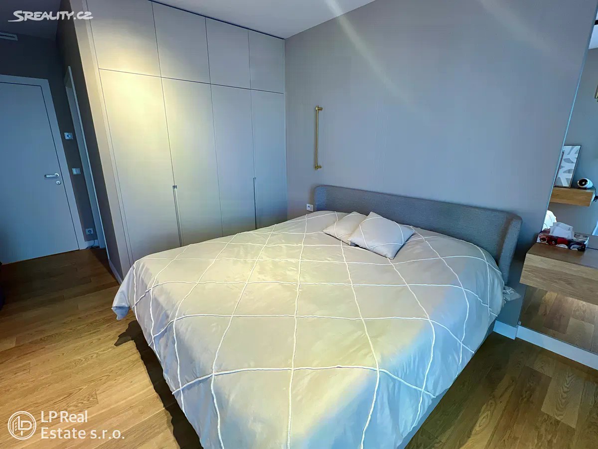 Byt pro ty, kteří vědí, co od života chtějí Tato nabídka je určena jen těm, kteří neustupují ze svého standardu a hledají domov odpovídající jejich představě o kvalitním životě. Rezidence Oliva od renomovaného developera Passerinvest Group se stala pražskou ikonou - symbolem moderní architektury, promyšleného designu a nadstandardního bydlení. Celá budova nabízí výjimečnou úroveň soukromí i sousedských vztahů. Díky pouhým 72 bytovým jednotkám zde panuje přátelská atmosféra, kde se lidé zdraví, usmívají a znají. Takových míst pro spokojený rodinný život v Praze opravdu mnoho nenajdete - a byty zde se prodávají jen zřídka. Dispozice a vybavení bytu Nabízený byt o rozloze 88,3 m² doplňuje lodžie 8,4 m² a sklep 7 m², který se nachází přímo za garážovým stáním v suterénu budovy - praktické a bezpečné řešení. V hlavní ložnici najdete koupelnu s vanou a toaletou, na chodbě pak druhou koupelnu se sprchovým koutem a samostatnou toaletu. Ložnice i dětský pokoj disponují bohatým úložným prostorem, včetně vestavěných skříní s vnitřním osvětlením. Samozřejmostí jsou elektricky ovládané žaluzie, díky nimž můžete vytvořit naprostou tmu a klid pro spánek. Dominantou bytu je prostorný obývací pokoj s kuchyňskou linkou na míru, který působí vzdušně a elegantně. Z obývací části vstoupíte na prostornou lodžii s posezením - ideální místo pro ranní kávu i večerní relax. Závěrem Rezidence Oliva je výjimečné místo, kde se kvalita, komfort a design snoubí v harmonický celek. Neváhejte kontaktovat našeho makléře a přijďte si osobně prohlédnout byt, který může být vaším novým začátkem.