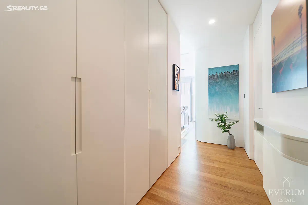 Nabízím k prodeji vzácný 2+kk s terasou v nejprestižnější rezidenci v ČR - V-Tower. Tento byt je zároveň nejdostupnější vstupenkou do tohoto ikonického projektu - raritní 2+kk s plným přístupem ke všem službám rezidence. V-Tower je považován za nejluxusnější adresu v zemi a nabízí rezidentům pětihvězdičkové služby na úrovni světových metropolí. Proč je tato nabídka výjimečná Dispozice 2+kk patří k nejvzácnějším - v celé rezidenci o 130 jednotkách jich existuje pouze velmi omezený počet. Jednou z těchto vzácných příležitostí je právě tento byt. Stejně jako Pařížská ulice symbolizuje prestiž mezi nákupními adresami, V-Tower je symbolem moderního luxusního bydlení. Nekupujete jen byt, ale i prestiž adresy, výjimečné služby a jistotu, že podobná příležitost se na českém trhu téměř nevyskytuje. Dispozice a vybavení Celková plocha 62,7 m², z toho nadstandardně velká terasa o 12,7 m² s jižní orientací a otevřeným výhledem. • Luxusní kuchyňská linka Poggenpohl se spotřebiči Siemens (včetně parní trouby a zabudované kombinované pračky se sušičkou) • Systém chlazených stropů a rekuperace - zdravější a komfortnější alternativa klimatizace • Chytré ovládání domácnosti • Ložnice s dostatkem úložného prostoru • Mramorová koupelna s WC v čistém, elegantním designu • Elektrické vnitřní rolety pro maximální komfort a soukromí • Praktická komora/technická místnost s dalším úložným prostorem • K bytu náleží jedno parkovací stání v uzavíratelné garáži s úložným prostorem Interiér je dále zařízen vestavěným nábytkem na míru v prvotřídní truhlářské kvalitě a doplněn exkluzivním osvětlením značek Ochio a Bulb. Dominantou je vstup do ložnice přes posuvné dveře JAP - 2,7 m vysoké a 1,2 m široké, vyrobené na zakázku, které podtrhují nadčasový charakter bytu. Služby rezidence Rezidenti mají k dispozici: • Wellness se saunou, párou, bazénem s protiproudem a vířivkou • Plně vybavené fitness centrum • Soukromé kino • Golfový trenažér • Yoga a masážní místnost • Dětský koutek • Konferenční místnost • 24/7 recepci, ostrahu a concierge služby To vše vytváří bydlení na úrovni pětihvězdičkového hotelu - komfort, bezpečí a prestiž v jednom. Měsíční poplatky činí cca 9 000 Kč a zahrnují přístup ke všem službám rezidence. Cena a dostupnost Cena: Nabídky od 24 000 000 Kč / 1 000 000 EUR Dostupnost: duben 2026 Nejprestižnější adresa, raritní dispozice a nejdostupnější vstupenka do V-Toweru - příležitost, která se nebude opakovat.