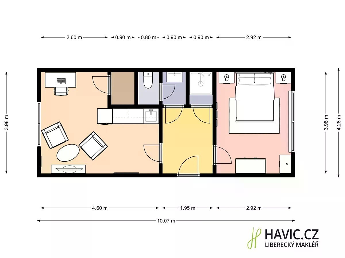 **Postup pro získání nájmu:** 1.) Vyplňte formulář u nabídky. Prosím NEVOLEJTE. Ve většině případů nejsem schopen přímo domluvit prohlídku. 2.) Jakmile si Vaší poptávku z formuláře přečtu, zašlu Vám dotazník pro zájemce o pronájem, který potřebuji vyplnit. 3.) Po vyplnění předložím formulář majiteli a následně budu volat s dalšími informacemi a možnými termíny prohlídek. Nabízím k pronájmu byt 2+kk o velikosti 39,75 m2 v přízemí panelového domu ve Starých Pavlovicích, ulici Šimáčkova. Dispozice bytu: Obývací pokoj s kuchyňským koutem, ložnice, samostatná koupelna se sprchovým koutem a samostatná toaleta. Podlahy v obývacím pokoji jsou kombinací nového PVC linolea a koberce. V chodbě, koupelně a na toaletě je keramická dlažba. Dům je napojen na rozvod elektrické energie, obecního vodovodu a kanalizace. Vytápění stejně jako ohřev TUV řešeno dálkově. Byt je po rekonstrukci, jsou zde nové rozvody elektřiny, nová plastová okna a je zde osazena kuchyňská linka s elektrickým sporákem s troubou. V bytě přípojka internetu UPC. Zálohy na služby: 5.267,- Kč Vratná jistota (kauce): 22.000,- Kč Provize realitní kanceláře: 11.000,- Kč bez DPH Elektřina přepsána na nájemce. Kompletní informace včetně virtuální prohlídky na havic.cz/0100 Váš Liberecký makléř Havic.cz.
