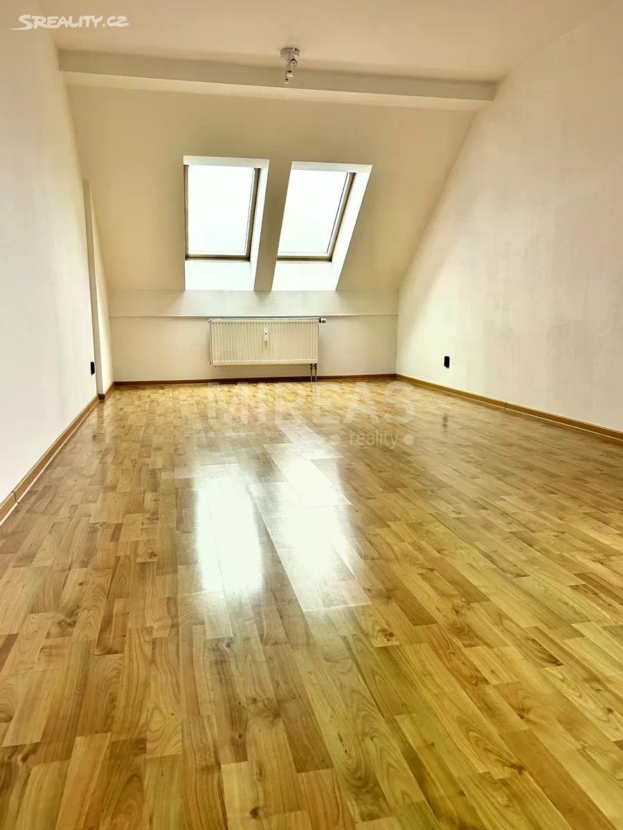 Nabízíme Vám k pronájmu družstevní byt 2+kk o výměře 59 m2 + sklep 2 m2, v Nymburce. Byt se nachází ve čtvrtém patře čtyřpatrového cihlového domu na Labských terasách. Dispozice bytu: vstupní chodba s šatní skříní, obývací pokoj s odděleným kuchyňským koute, do kterého je vstup i z chodby. Kuchyň s linkou včetně vestavěných spotřebičů (elektrický sporák se sklokeramickou deskou, digestoř). Koupelna s vanou se zástěnou, umyvadlo se skříňkou, zrcadlová skříňka, pračka. Samostatná toaleta. Byt je bez vybavení. V bytě jsou plastová střešní okna + v obývacím pokoji francouzké okno (bez balkonu), podlahy vinyl a lamino, v koupelně a chodbě dlažba. Topení a ohřev teplé vody je řešeno společný plynovým kotlem v domě. V přízemí domu se nachází plynová kotelna, kolárna, kočárkárna a sklepy. K bytu náleží zděný sklep 2 m2. U domu je parkoviště. V těsné blízkosti cyklostezka, dětské hřiště, supermarket, restaurace. Kompletní občanská vybavenost v docházkové vzdálenosti. Volné od 01.01.2026