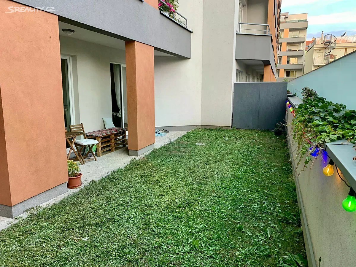 Neplatíte provizi! Pronajmu krásný, prostorný byt 2+kk s terasou, předzahrádkou, velkým sklepem a možností garážového stání, ve 2. podlaží cihlové novostavby s výtahem v ulici Petrohradská, Praha 10 - Vršovice. Byt má plochu 59 m2 + terasa 15,9 m2 + předzahrádka 36,1 m2 a je zařízen kuchyňskou linkou s vestavěnými spotřebiči (lednice s mrazničkou, elektrická a mikrovlnná trouba, myčka, sklokeramická varná deska, digestoř), kuchyňským ostrůvkem se židlemi a velkou skříní v ložnici. Koupelna je vybavena umyvadlem se skříňkou, zrcadlem, otopným žebříkem, vanou a prostorem pro pračku. Toaleta má samostatný vstup z koupelny. K bytu náleží velký zděný sklep o ploše 7,1 m2. Garážové stání v suterénu domu je k pronájmu za částku 2.000,-Kč. Přímo před domem se nachází autobusová zastávka ve směru metro Kačerov (9 min.), Budějovická (10 min.). Ve vzdálenosti 5 min. chůze je tramvajová zastávka ve směru Strašnická (8 min.), I.P.Pavlova (9 min.) Pražského povstání (10 min.), Karlovo nám. (13 min.), Anděl (14 min.). Vlakové nádraží Praha-Vršovice je vzdáleno 6 min. chůze od domu. V nejbližším okolí jsou mateřské a základní školy, gymnázium, dětská hřiště, kavárny, čajovna, restaurace, lékárna, poliklinika, pošta, zimní stadion, tenis, supermarket Lidl, Havlíčkovy sady. Minimální doba pronájmu 1 rok. Byt bude volný nejdříve od 1.1.2026. Prohlídky již nyní.