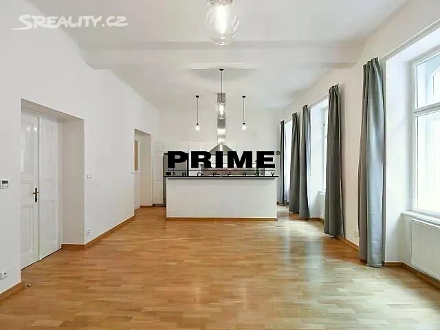 Zrekonstruovaný, 2 ložnicový, nezařízený mezonetový byt se 2 koupelnami k pronájmu, vhodný také ke klidnému kancelářskému provozu, 3+kk, 118m2, s malým balkonem a s možností pronájmu garáže, situovaný v 1. patře a přízemí zrekonstruovaného secesního bytového domu s výtahem (dvě místnosti směřují do klidného vnitrobloku). Budova se nachází v klidné ulici na Vinohradech, u parku Riegrovy sady, jednu minutu chůze na zastávku tramvaje a k Vinohradskému pavilonu se supermarketem Albert, 5 minut chůze ke stanici metra Náměstí Míru, 10 minut chůze na Václavské náměstí, blízko obchodů, kaváren a restaurací. Dispozice vstupního horního podlaží bytu: vstupní předsíň, prostorná místnost s novým plně vybaveným kuchyňským koutem se spotřebiči, další samostatná místnost, koupelna (se sprchovým koutem a umyvadlem) se vstupem na malý balkon a samostatné WC. V dolním podlaží je místnost s koupelnou (s vanou, dvěma umyvadly, toaletou a bidetem). Na podlaze jsou parkety a dlažba. Vestavěné skříně, přípojka na internet a přípojka na satelit. Možnost pronájmu samostatné garáže za cenu 6.500 Kč za měsíc. Kauce: 90.000 Kč. Nájemné: 55.000 Kč + služby 4.500 Kč/měsíc + poplatky cca 5.000 Kč/měsíc (voda, plyn, elektřina). K dispozici: od ledna 2026.