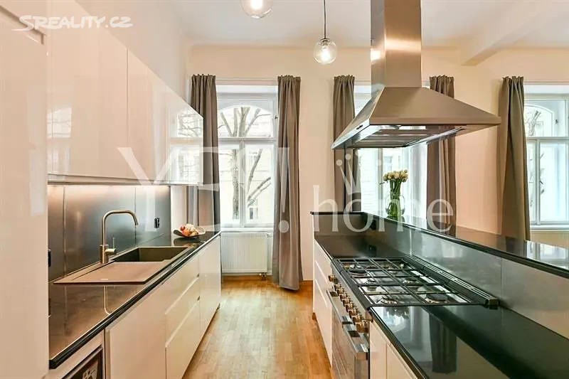 Luxusní, mezonetový, nově zrekonstruovaný, velmi tichý, nezařízený byt 3+kk s balkonem, 118 m2 (byt 115 m2 + balkon 3 m2), zvýšené přízemí a 1. patro s výtahem ve velmi dobře udržovaném, nově renovovaném, secesním domě s bezpečnostním kamerovým systémem v lukrativní a klidné lokalitě centra města přímo u Riegrových sadů, Mánesova, Praha 2 - Vinohrady. V bytě je velká vstupní hala, velký obývací pokoj s novým plně vybaveným kuchyňským koutem s barovým pultem (digestoř, sklokeramická varná deska, pečící trouba, mikrovlnná trouba, myčka, americká lednice), 2 samostatné ložnice, 2 en-suite koupelny (vana, toaleta, bidet a sprchový kout, toaleta, bidet), další oddělená toaleta pro hosty, praktická komora s pračkou a sušičkou, balkon orientovaný do vnitrobloku. Kvalitní dřevěné parketové podlahy v kombinaci s dlažbou. Elegantní vysoké stropy. Byt je zabezpečen bezpečnostím zámkem. K dispozici TV, DVD, SAT a internetové připojení, video intercome. Za domem Riegrovy sady, plavecný bazén, atletická dráha, dětská hřiště a mnoho vyhlášených restaurantů. Perfektní dostupnost, jen 10 min. pěší chůze k Václavskému náměstí, u domu tram. Vinohradská tržnice, linka 11, nedaleko metro Náměstí Míru, linie A či Jiřího z Poděbrad, linie A. Garážové stání za extra příplatek 6 500 Kč. Poplatky 4 500 Kč + energie (cca 5 000 Kč). Vratná kauce 90 000 Kč. Volný od 1.1.2026. Prohlídky ihned.