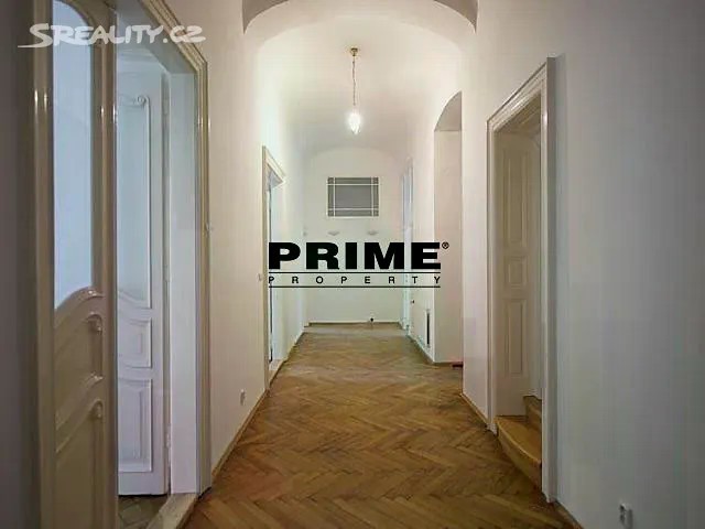 K dispozici od února 2026. Prostorný, nezařízený kancelářský prostor se 2 koupelnami k pronájmu, dispozice 4+1, 174m2, situovaný v 1. patře zrekonstruovaného secesního domu s výtahem. Budova se nachází jen pár minut chůze od zastávky tramvaje a stanice metra Národní třída a Můstek, blízko obchodního centra Quadrio, obchodů, kaváren, restaurací, Václavského náměstí a nedaleko Národního divadla a Staroměstského náměstí. Dispozice: prostorná centrální předsíň, 4 místnosti (jedna s arkýřem), plně vybavená kuchyň se spotřebiči, dvě koupelny (vana, dvojumyvadlo, toaleta a bidet + sprchový kout, umyvadlo a toaleta) a samostatné WC. Vysoké štukové stropy, velká okna, parkety, dlažba, plynový kotel. Kauce: 2 měsíční nájmy. Nájemné: 79.000 Kč + služby vč. zálohy na vodu 1.250 Kč/osoba/měsíc + elektřina a plyn (převod na nájemce) + provize RK. K dispozici od února 2026.