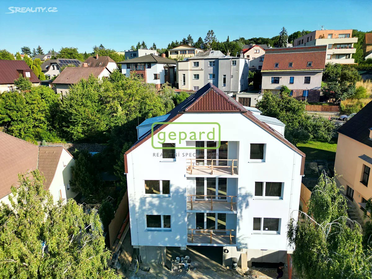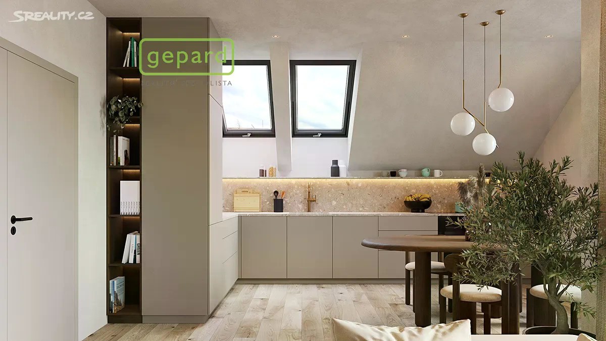 Realitní společnost Gepard nabízí byt 6+kk o velikosti 160m2, balkon 9,7m2 se vstupem ze dvou pokojů a druhý balkon 6,2m2 se vstupem z obývacího pokoje, podkrovní pokoj o velikosti 48m2 s koupelnou společnou s WC se nachází ve 4.NP a je z bytu přístupný po schodišti umístěném na chodbě. K bytu náleží 2x garážové stání, sklep 2,8m2 (přístup z garáže), 1x venkovní parkovací stání na pozemku, komora na patře. Byt je součástí projektu Viladům Plzeňská, který zahrnuje tři bytové jednotky s dispozicí 2x 4+kk a 1x 5+kk se zahradou, balkony, garáží a venkovním parkovištěm, výtahem, v zástavbě rodinných domů na rozhraní Stodůlek a Řep. Dům je napojený na všechny inženýrské sítě, topení a ohřev vody jsou řešeny kondenzačním plynovým kotlem v každém bytě, rekuperací, energetický štítek B, okna trojskla, příprava na klimatizaci, tepelné čerpadlo a fotovoltaiku. Dále příprava na rozvod vody ze společné studny a na rozvod dešťové vody z akumulační nádrže. Ve standardním provedení je možný výběr zařizovacích předmětů sociálního zařízení, dekorů podlah, dveří a obkladových materiálů. Byty budou předávány kompletně dokončené, vyjma kuchyňské linky. Dokončení je plánováno na prosinec 2025, poté kolaudace. Projekt Viladům Plzeňská se nachází v docházkové vzdálenosti od parků např. lesopark Řepy 300m, spojení na metro Anděl, Zličín a Dejvická. Zajistíme Vám zdarma financování za nejvýhodnějších podmínek případně prodej Vaší stávající nemovitosti.