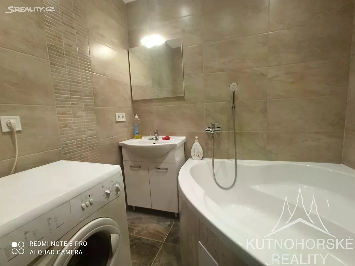 Pronájem útulného bytu 2+kk po rekonstrukci - Kutná Hora Nabízíme k pronájmu útulný byt 2+kk (36 m²) po kompletní rekonstrukci, nacházející se v 1. patře bytového domu v klidné části Kutné Hory. Byt je světlý, moderně zařízený a připravený k okamžitému nastěhování. Díky promyšlenému uspořádání nabízí příjemné a praktické bydlení pro jednotlivce nebo pár. Dispozice bytu: Obývací pokoj s kuchyňským koutem - kuchyňská linka včetně spotřebičů: varná deska, trouba, digestoř, myčka, mikrovlnka, velká lednice s mrazákem Vestavěná šatní skříň s dostatkem úložného prostoru Ložnice / druhý pokoj Koupelna s rohovou vanou, umyvadlem se skříňkou, zrcadlem a pračkou Samostatná toaleta Byt je orientován na východ, takže si i v horkých letních dnech udrží příjemné klima. Náklady: Nájemné: 12 000 Kč / měsíc Služby: 3 000 Kč / měsíc (voda, teplo, společné prostory) Elektřina: přepis na nájemce (cca 1 000 Kč / měsíc) Kauce: 24 000 Kč Provize RK Lokalita: Výborná dopravní dostupnost - zastávky MHD, autobus i vlak v docházkové vzdálenosti. Do 5 minut pěšky najdete Penny Market, Kaufland, Albert, Tesco i obchodní centrum. Perfektní kombinace klidného bydlení a kompletní občanské vybavenosti. Byt bude volný od 1.1.2026. V případě zájmu o prohlídku nebo více informací mě neváhejte kontaktovat.