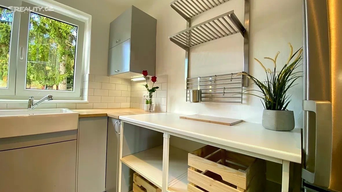 Prostorný byt 2+1 se zahradou a vlastním vstupem K pronájmu nabízíme prostorný a velmi příjemný byt 2+1 o velikosti 66 m² s vlastní zahradou, který se nachází ve vyvýšeném přízemí menšího bytového domu v ulici Záhořanská v Berouně. Byt má vlastní vchod, je zcela oddělen od zbytku domu a nabízí tak maximální soukromí i pohodlí. Výhodou je možnost užívání udržované zahrady o velikosti 142 m², která je již zahrnuta v ceně nájmu. Na zahradě je k dispozici kůlna, terasa pro posezení a možnost záhonů s bylinkami. Přístup je zajištěn přes vlastní uzamykatelnou branku. Dispozice a stav bytu Byt je ve výborném stavu, udržovaný a připravený k nastěhování. Dispozici tvoří vstupní chodba, ložnice, koupelna s WC a otevřený prostor kuchyně, jídelny a obývací části. Dominantou interiéru jsou přiznané cihlové stěny, které bytu dodávají osobitý charakter a moderní vzhled. Vybavení a technické řešení V bytě je instalováno teplovodní podlahové vytápění, které zajišťuje rovnoměrné teplo po celé ploše. Kuchyňská linka v kombinaci bílé, dřeva a chromu je plně vybavena spotřebiči - vestavnou myčkou, elektrickým sporákem s troubou, digestoří a lednicí s mrazákem. Koupelna (7 m²) je laděna do přírodních odstínů a vybavena sprchovým koutem, umyvadlem se zrcadlem a přípravou pro pračku a sušičku. Obývací pokoj (17 m²) působí vzdušně a nabízí pohled do zeleně. Energie a náklady Zálohy na služby činí 1 500 Kč/měsíc, záloha na elektřinu 2 690 Kč/měsíc. Teplá voda je ohřívána elektrickým bojlerem. Byt bude před předáním čerstvě vymalován a uklizen. K nastěhování od 1. 2. 2026. Lokalita a okolí Byt se nachází v klidné rezidenční části Berouna, která nabízí příjemné prostředí i výbornou dopravní dostupnost. V docházkové vzdálenosti je zastávka autobusových linek i vlakové nádraží, odkud je snadné spojení do Prahy. Rychlý nájezd na dálnici D5 je vzdálen jen několik minut. V okolí se nachází obchody (Lidl, Albert, Billa, Kaufland), lékárna, pošta, bankomaty, Základní a Mateřská škola, a také sportovní areál Eden s koupalištěm, fitness a tenisovými kurty. Další informace Parkování je možné přímo před domem. Byt je ideální pro jednotlivce nebo pár, kteří hledají klidné a útulné bydlení s možností relaxace na vlastní zahradě. Domluvte si prohlídku ještě dnes a napište nám zprávu pro více informací.