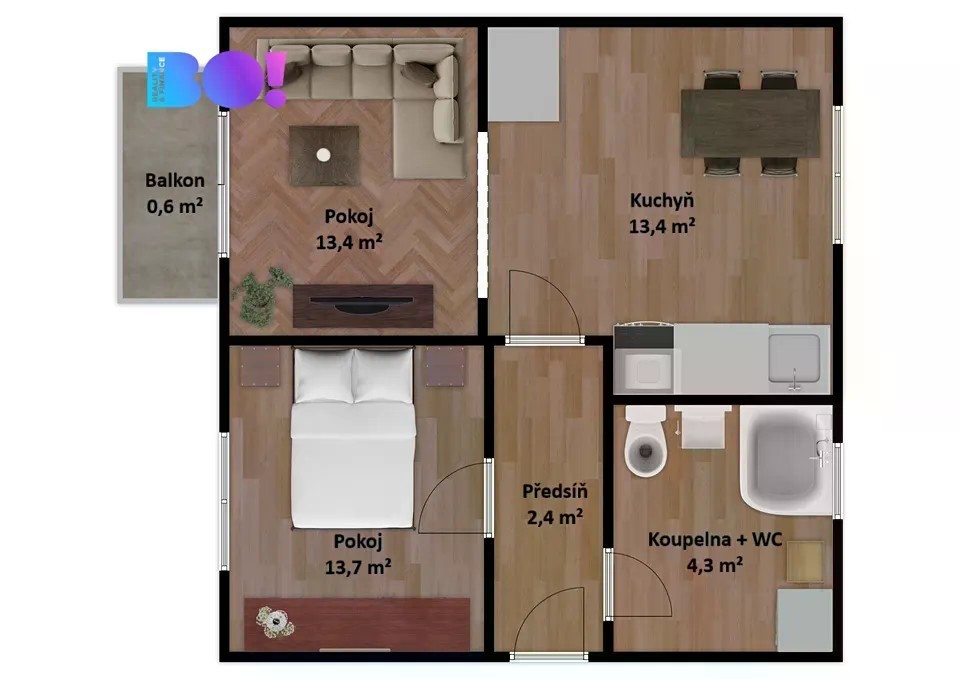 Nabízíme k dlouhodobému pronájmu světlý byt umístěný ve 2NP bytového domu bez výtahu. Dispozice bytu je 2+1 - pokoj 13,7 m², obývací pokoj 13,4 m², kuchyně 13,4 m², předsíň 2,4 m², koupelna s WC 4,3 m². Součástí bytu je i balkon o výměře 0,6 m² na kterém je umístěné tepelné čerpadlo pro bytovou jednotku. Dále může nájemník užívat i sklep o velikosti 3,5 m². V kuchyňské lince je přívod vody na pračku a myčku nádobí. Voda je ohřívána elektrickým bojlerem. Město Benátky nad Jizerou má plnou občanskou vybavenost, parkování je možné na ulici před domem. Záloha na poplatky je 3.500,- (max. 2 osoby, každá osoba navíc 400,-), dále majitel požaduje 1 kauci ve výši nájmu 15.000,- (2 kauce v případě domácích zvířat) a provizi RK ve výši 22.000,-. Kauce ani provize není možná na splátky. Majitel si vyhrazuje právo na výběr svého nájemce. V případě dalších dotazů a domluvení termínu prohlídky jsme Vám k dispozici. Nemovitost je ihned k dispozici.
