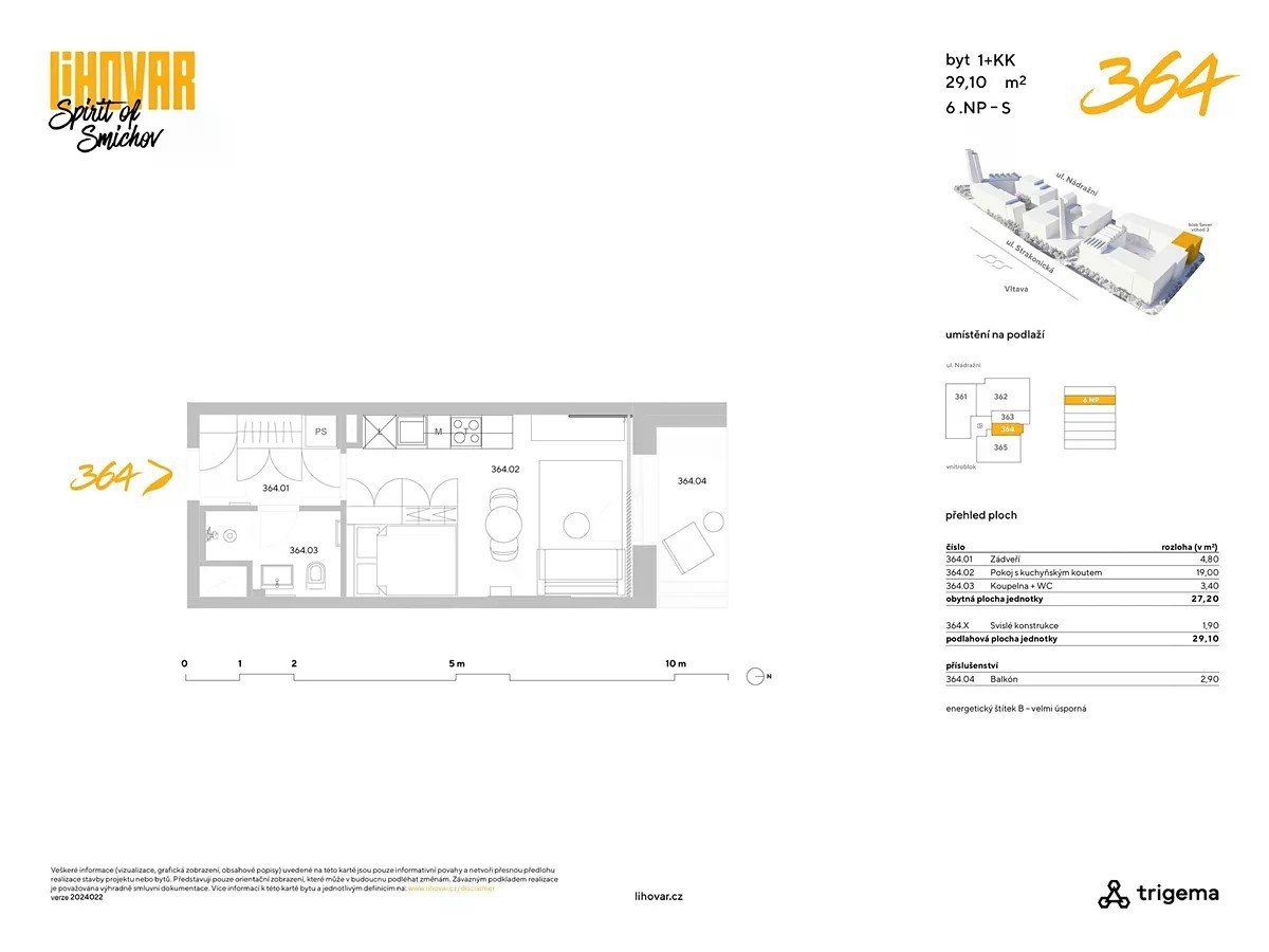 Nabízíme k dlouhodobému pronájmu kompletně zařízenou moderní garsoniéru situovanou v 6. patře nově vybudovaného rezidenčního komplexu Lihovar v atraktivní lokalitě Praha 5 - Smíchov. Dispozice bytu: Interiér tvoří obývací část propojená se spacím koutem, plně vybavená kuchyňská linka se spotřebiči a jídelním prostorem, koupelna se sprchovým koutem a toaletou a vstupní chodba s úložnými prostory. K bytu náleží balkón o velikosti 2,9 m2. Vybavení a standardy: • Chytrá domácnost LOXONE • Rekuperace • Klimatizace • Kvalitní vinylové podlahy, centrální podlahové vytápění • Vestavěné skříně • Spotřebiče: pračka, myčka, indukční varná deska, digestoř, pečící trouba, mikrovlnná trouba, lednice + mrazák • Wellness WC s bidetovou sprškou • Internetové připojení • Venkovní žaluzie Další informace: • Poplatky za služby a zálohy za energie se hradí zvlášť • Garážové stání k dispozici za poplatek 2 500 Kč / měs. + DPH • Sklepní kóje k dispozici za poplatek od 700 Kč / měs. + DPH • V budově je 24/7 recepce / ostraha, kamerový systém • K dispozici je společná střešní terasa s výhledem na Prahu Provize se neplatí. Dostupnost: K nastěhování od 9.1.2026.
