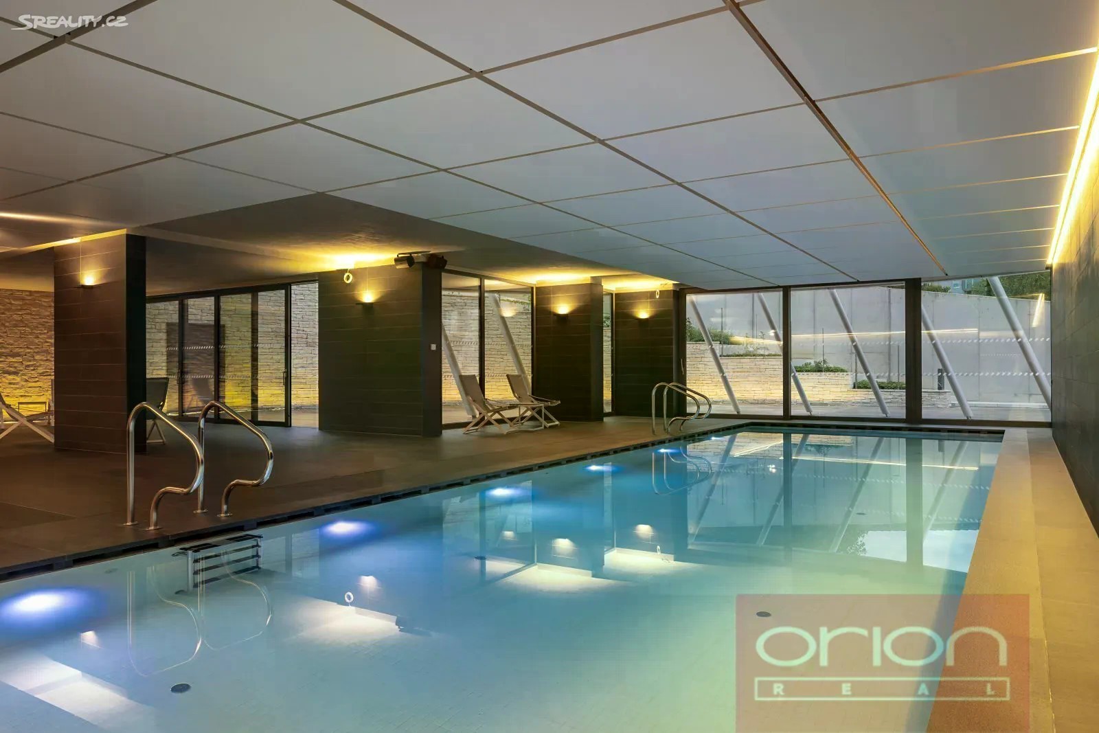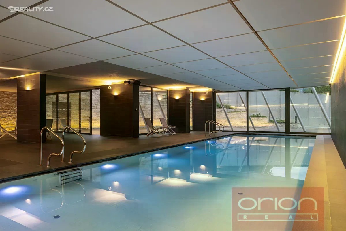 Nabízíme k pronájmu luxusní byt 2+kk s terasou v 1. patře novostavby Rezidence Ellipsis s recepcí, výtahem, podzemní garáží, wellness s bazénem a saunou, a rozlehlou zahradou s parkovou úpravou ve vyhledávané lokalitě Praha 5 - Smíchov. Zařízený byt o velikosti 78,80 m2 nabízí vstupní halu, prostorný obývací pokoj otevřený s jídelnou a plně vybavenou kuchyní, ložnici, koupelnu s vanou, sprchou, bidetem a toaletou a samostatné WC. Z obývacího pokoje a z ložnice je vstup na terasu o velikosti 9,49 m2. Součástí vybavení jsou dřevěné podlahy, velkoformátová dlažba, francouzská okna, bezpečnostní dveře, klimatizace, internet, sklep. V blízkém okolí je spousta zeleně, Kinského sady, Petřínské sady, Vltavské nábřeží. Lokalita s výborným dopravním spojením do historického centra Prahy, do nákupního centra Nový Smíchov, Německé a Francouzské školy. V pěší vzdálenosti je stanici metra a tramvaje Anděl. Nájemné, včetně poplatků, úklidu 2x měsíčně činí 2200 euro měsíčně + 12%DPH. Poplatek za garážové stání extra 200 euro + 21% DPH, poplatek za vstup do Wellness 100 euro. V přízemí budovy se rovněž nachází fitness centrum Prisma Institut, které je ideálním pro aktivní odpočinek. Byt je určen ke střednědobému pronájmu, minimální doba ubytování je jeden měsíc.