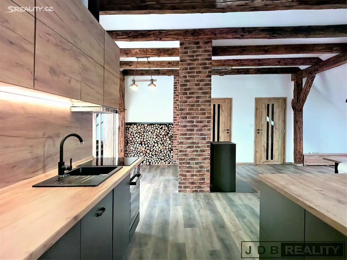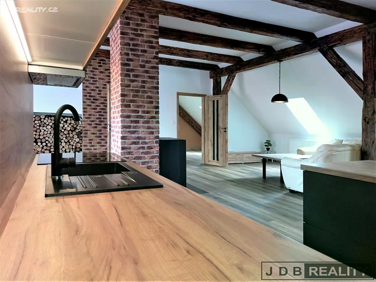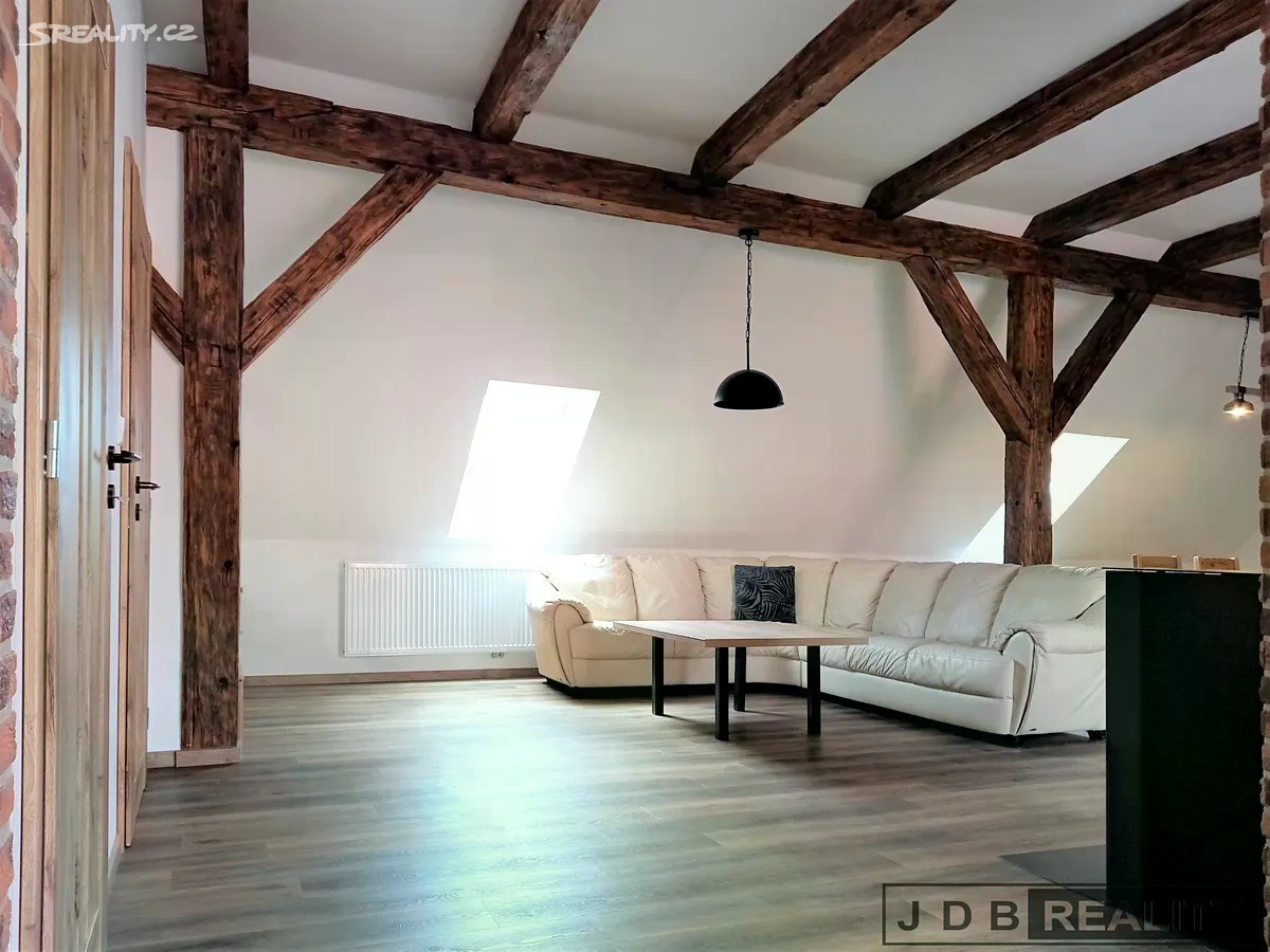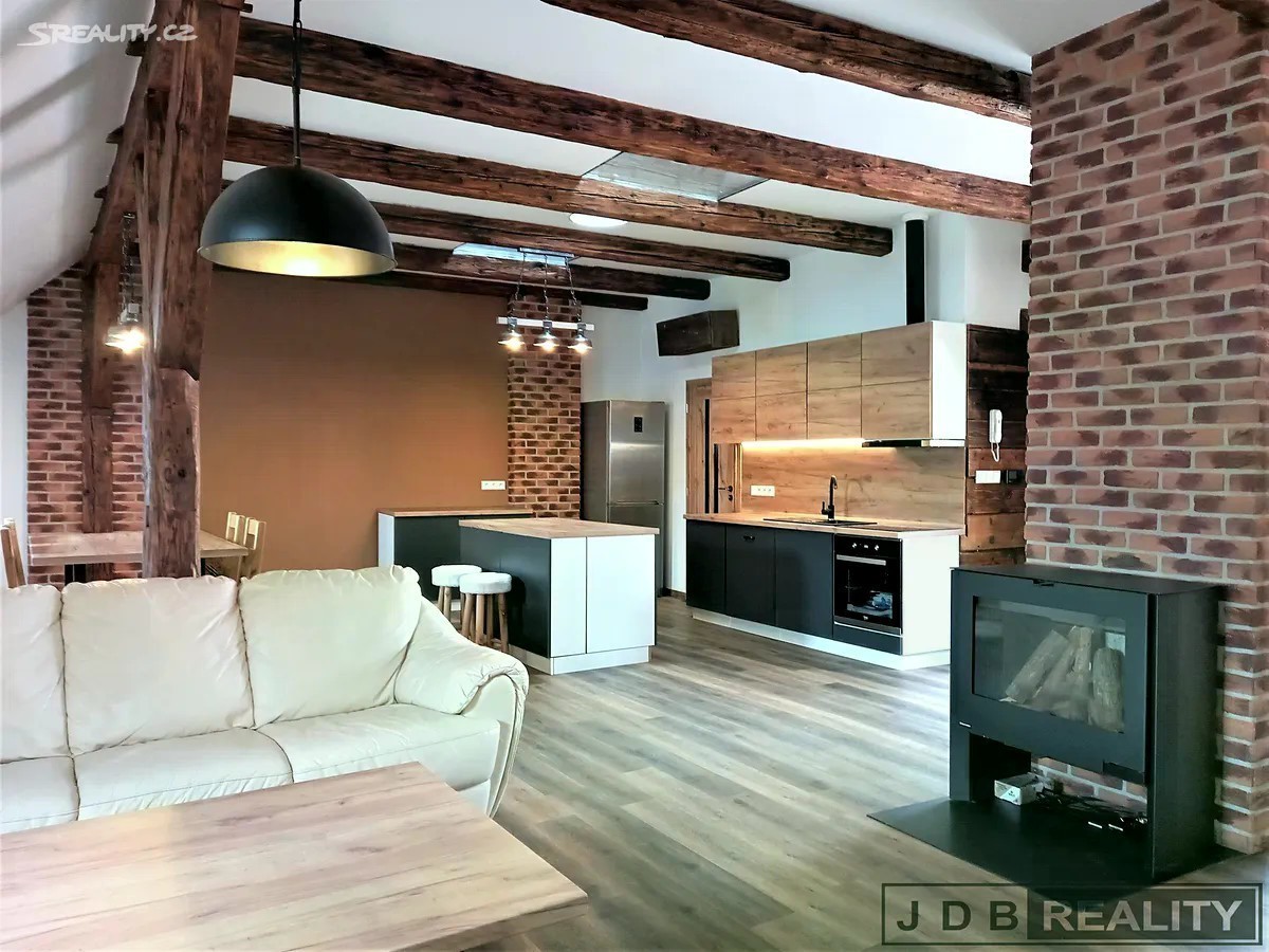 Nabízíme pronájem velice pěkného, celkově zrekonstruovaného a částečně zařízeného bytu o celkové velikosti 127m2, který se nachází nedaleko Mírového náměstí v Litoměřicích. Klimatizovaný byt o dispozici 3+kk je situován v podkroví třípodlažního domu v centru města. Do bytu se dostanete po schodišti, dále do vstupní chodby a následně do velkého obývacího pokoje s plně vybaveným kuchyňským koutem, pracovním ostrůvkem a jídelním koutem. Vedle kuchyňské linky je samostatná spíž. Z centrálního obývacího pokoje kde je umístěn krb je vstup do dalších dvou pokojů a do koupelny. Koupelna je vybavena vanou a sprchovým koutem, umyvadlem, pračkou a sušičkou a je zde vstup na samostatné wc. V koupelně je dále umístěn nový plynový kotel, kterým je zajištěno vytápění a ohřev vody, v celém bytě jsou nová okna a kvalitní vinylové podlahy. K bytu dále náleží sklad, velká půda a sklep. Zajímavostí bytu jsou dvě velká výklopná okna s vyhlídkou. Parkování je možno přímo před domem. Litoměřice jsou městem s plnou občanskou vybaveností a skvělou dopravní dostupností. Ve městě a okolí je velké možnosti sportovního a kulturního vyžití. Nájemné činí 22.800,-Kč/ měsíčně a zálohy na služby 5.000,-Kč. Při podpisu nájemní smlouvy se skládá vratná kauce ve výši 45.000,- Kč a provize RK V případě zájmu o bližší informace kontaktujte makléře.