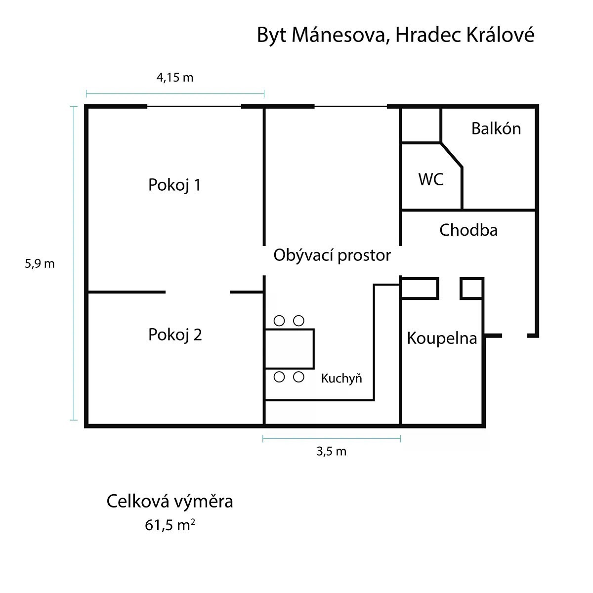Pronájem bytu 2+kk 62 m² Mánesova, Hradec Králové
