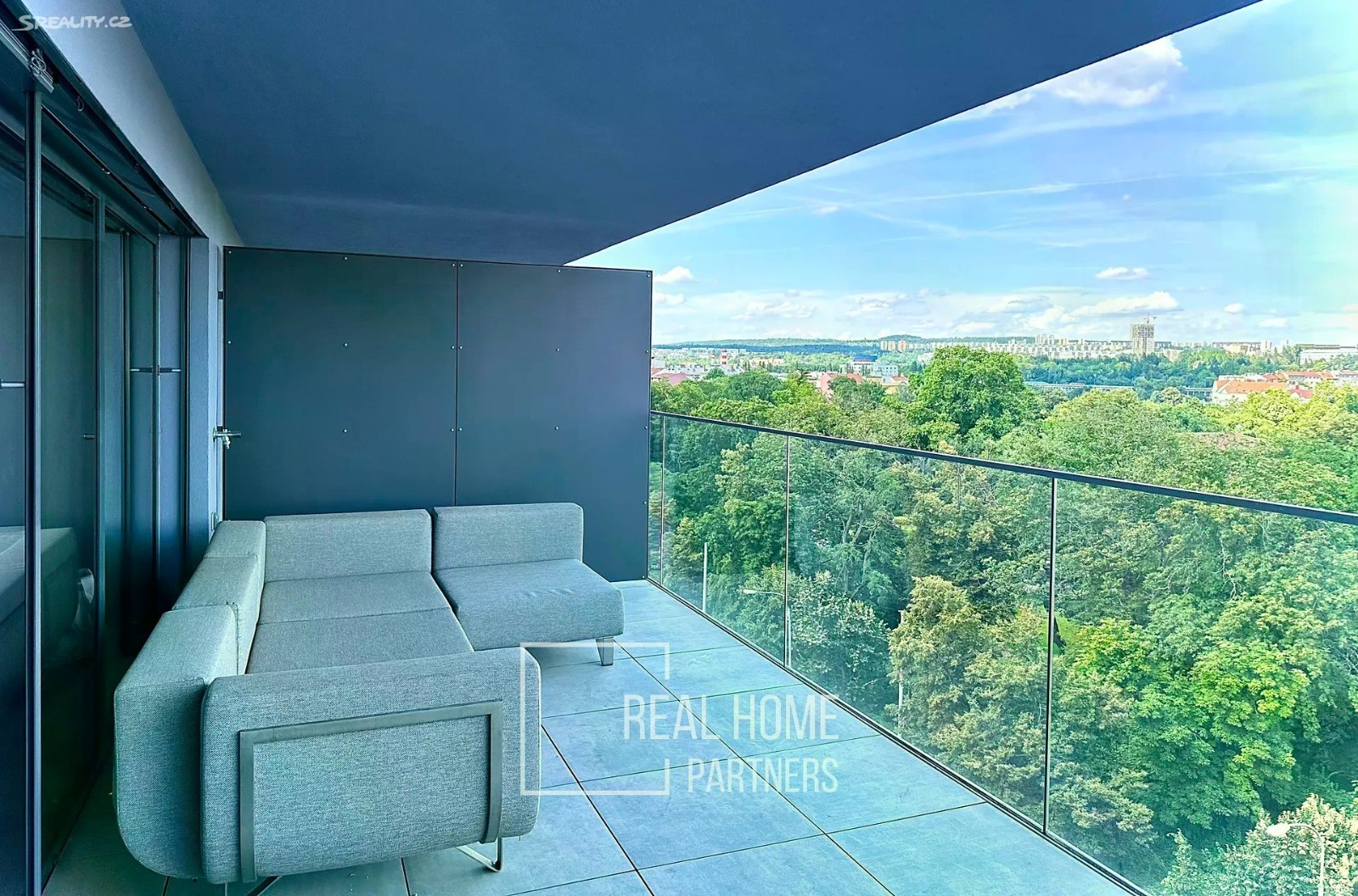 Nabízíme Vám možnost zažít úžasné výhledy na Brno z vyššího patra a to z 8. patra, na vilu Tugendhat, největší park v Brně Lužánky, na Hády a to v podobě prémiového bydlení v bytovém domě Central Park Brno, který byl vloni zkolaudován ve vysokém nadstandardu pro náročného klienta. Jedná se byt o dispozici 2+kk s terasou o 22 m2 otočenou na jihovýchodní stranu /výhledy z terasy - ve videu, v inzerátu/. Terasa je vybavena nábytkem, je zde také osvětlení, elektřina, možnost grilování. Celý byt byl navržen velmi citlivě bytovým designérem, tak aby splňoval nároky luxusního bydlení v samotném centru města. Vybavení se skládá: dřevěné podlahy, klimatizace, předokenní venkovní žaluzie, vysoké dveře, rekuperačními jednotkami zajišťujícími komfortní přísun čerstvého vzduchu. Dům disponuje také garážemi na zaparkování vozidla, kdy se přímo výtahem dostanete do bytu. K bytu náleží také sklep. Možnost garážového stání za 2500 Kč/měs. Datum zahájení nájmu je možné ihned. Doporučujeme, tohle není Rezidence Brno, ale Central Park Brno.