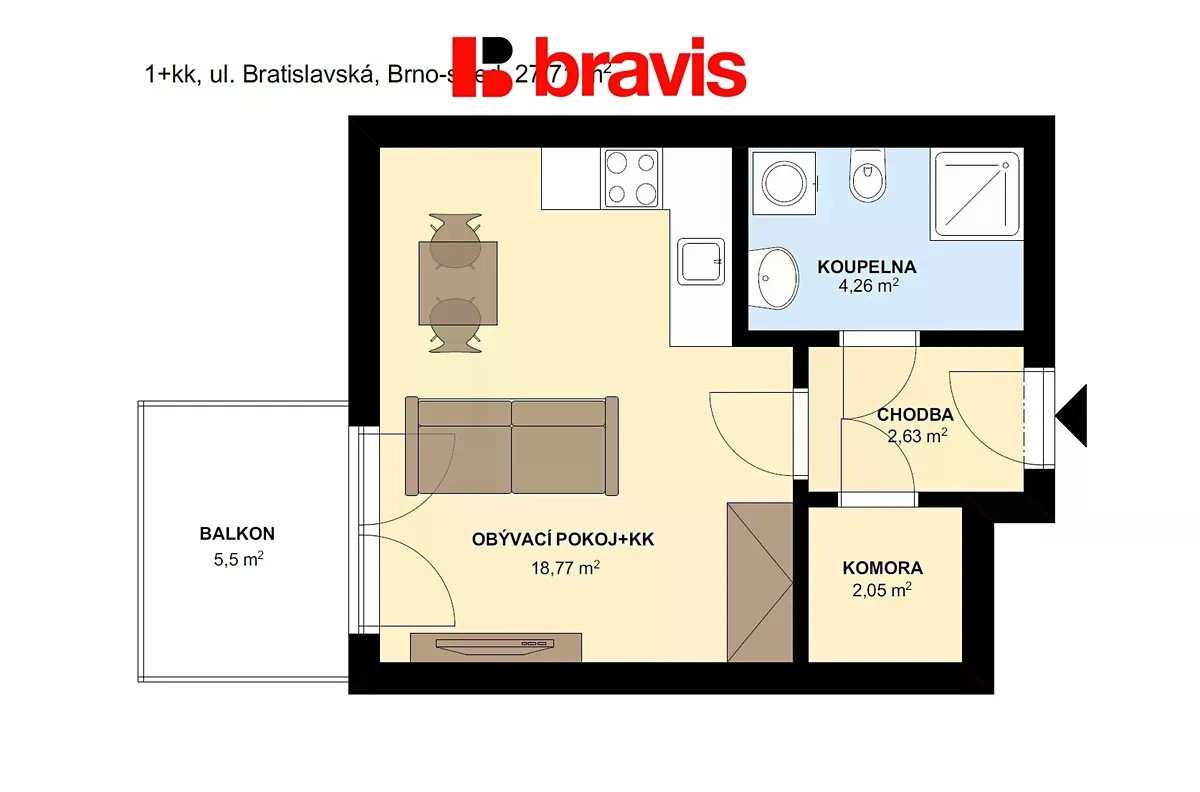 Prodej bytu 1+kk 28 m² Bratislavská, Brno - Zábrdovice