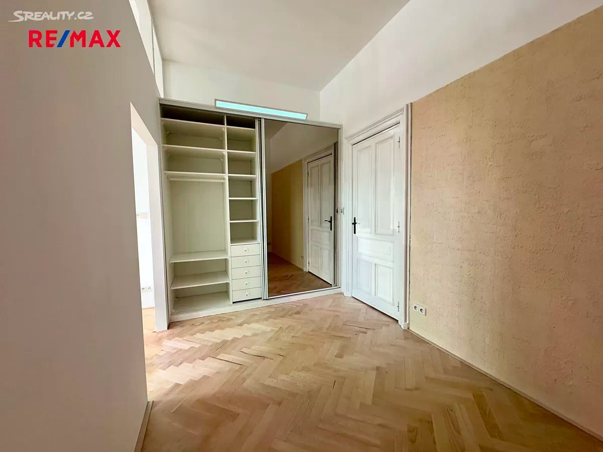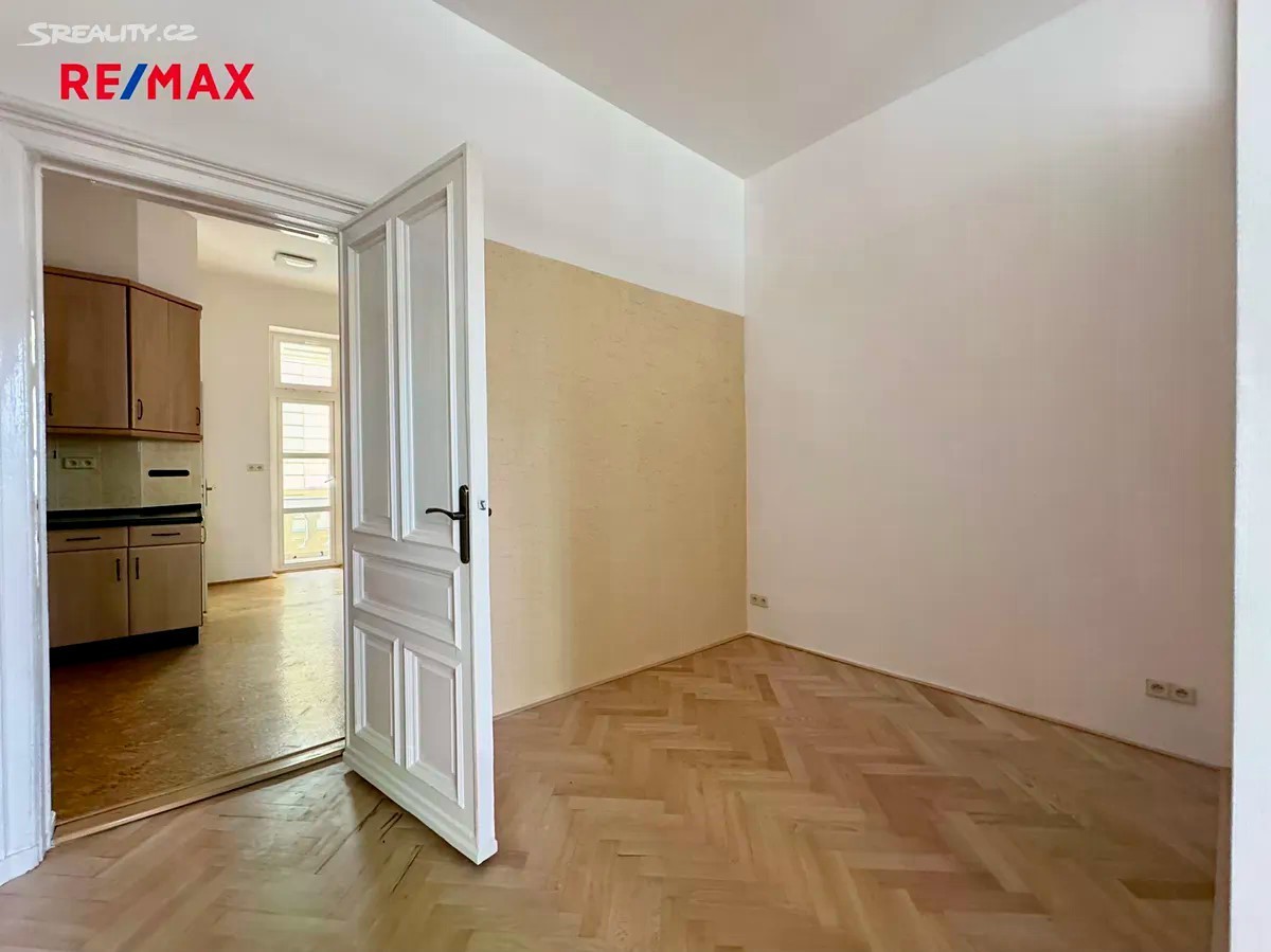 Nabízím k pronájmu byt po rekonstrukci, umístěný v historickém novobarokním domě z roku 1898 na prestižní adrese Tř. Svobody, Olomouc. Dispozice bytu je 2+1 o celkové užitné ploše 75 m² + balkonek 2 m². Nachází se ve 3. patře bez výtahu. Dominantou bytu jsou dvoukřídlé dveře, které zdůrazňují historický charakter interiéru a opakují se i v jednotlivých místnostech. Oba pokoje mají výměru přibližně 26 m², ložnice je rozčleněna příčkou na šatnu či pracovnu s velkou vestavěnou skříní a ve zdi je k dispozici trezor. Kuchyně je vybavena elektroplynovým sporákem a nejnovějším plynovým kondenzačním kotlem. Z kuchyně je vstup do koupelny, spíže a na balkon. V koupelně menší vana, umyvadlo, okno do dvora a topný žebřík. V pokojích jsou parketové podlahy, v chodbě vinyl a v kuchyni korková podlaha. Na oknech pokojů jsou vertikální látkové žaluzie. V předsíni jsou vestavěné skříně a vstup na WC. Okna obývacího pokoje a ložnice směřují do ulice s pěkným výhledem na centrum, kuchyň s balkonem pak do klidného vnitrobloku směrem na Kollárovo náměstí. Byt představuje ideální spojení historické atmosféry a moderního komfortu. V bezprostřední blízkosti je veškerá občanská vybavenost, školy i dopravní spojení. Možnost trvalého pobytu umožňuje pořízení rezidentské parkovací karty. Byt je volný ihned.