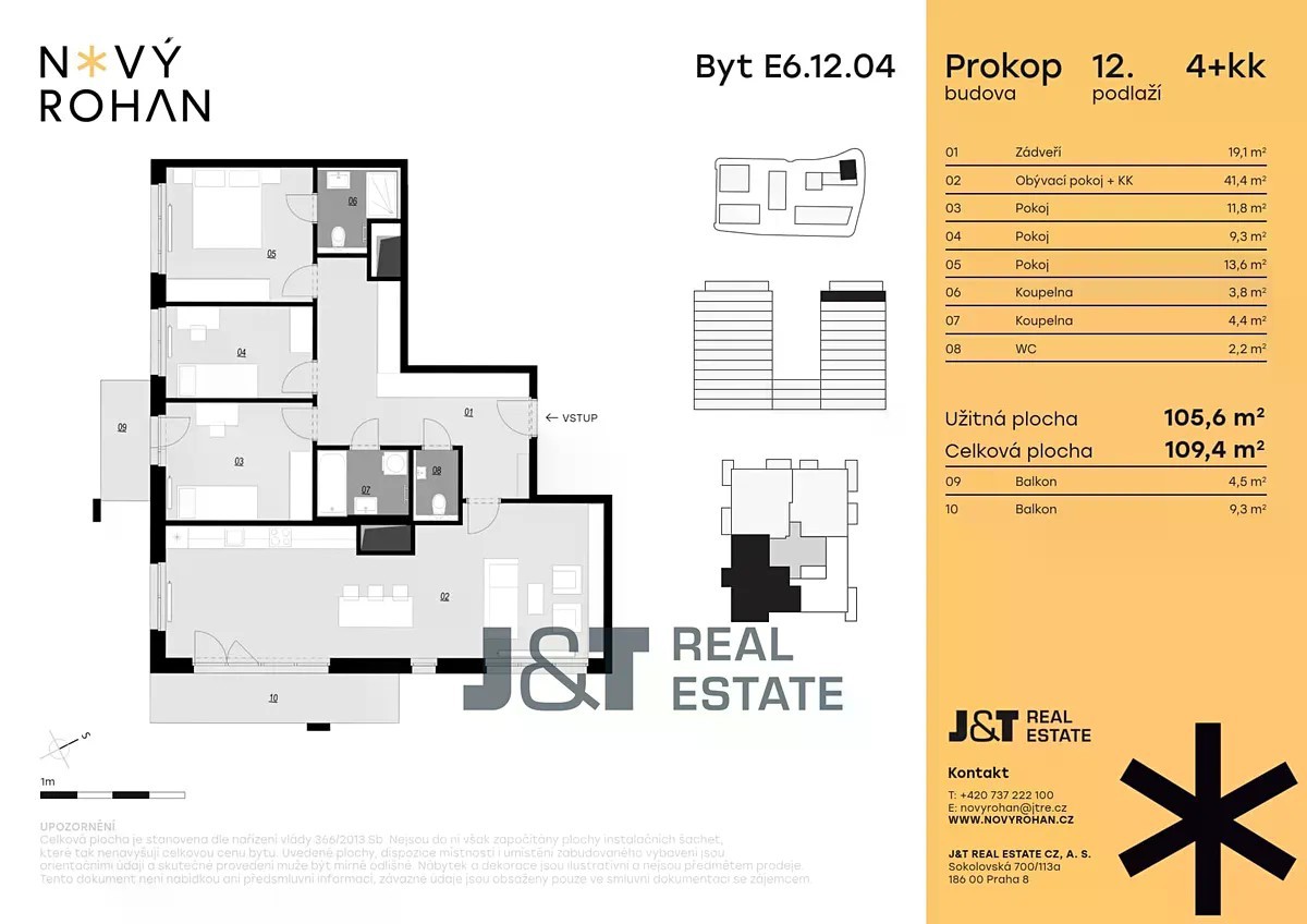 V rámci prestižního projektu Nový Rohan nabízíme nadstandardně prostorný byt o dispozici 4+kk a celkové výměře 109,4 m², který je ideální volbou pro rodinné bydlení. Tento byt zaujme promyšleným dispozičním řešením, kde hlavní obytný prostor s kuchyňským koutem nabízí téměř 41,4 m² a přirozeně se stává srdcem celého domova. Tři další samostatné pokoje poskytují dostatek prostoru pro ložnici, dětské pokoje, pracovnu nebo kombinaci všeho podle vašich aktuálních potřeb. Maximální komfort zajišťují dvě plnohodnotné koupelny - jedna vybavená sprchovým koutem, druhá vanou, což ocení zejména rodiny s dětmi. K příjemnému standardu tohoto bytu patří i dva prostorné balkony, které rozšiřují obytný prostor a nabízejí místo pro relaxaci na čerstvém vzduchu. Samozřejmostí je sklepní kóje a možnost dokoupení parkovacího stání v podzemních garážích. Nový Rohan je vizí moderní městské čtvrti, kde se propojuje kvalitní architektura, pohodlí a blízkost přírody. Lokalita na Rohanském ostrově nabízí výjimečné spojení klidného bydlení u řeky s výhodami městského života. V docházkové vzdálenosti najdete školy, školky, kavárny, restaurace i obchody, stejně jako plánovaný park Maniny, který přinese rozsáhlé zelené plochy pro relaxaci a sport. Karlín dlouhodobě patří mezi nejžádanější pražské čtvrti a projekt Nový Rohan tento trend dále rozvíjí. Díky skvělé dopravní dostupnosti, bohaté občanské vybavenosti a okolní přírodě zde vzniká skutečné město krátkých vzdáleností, kde máte vše podstatné doslova na dosah. Dokončení bytových domů Prokop a Vincent je plánováno na konec roku 2027, s možností nastěhování do poloviny roku 2028. V nabídce je i široká škála dalších bytů různých velikostí a dispozic. Pro více informací nás neváhejte kontaktovat.