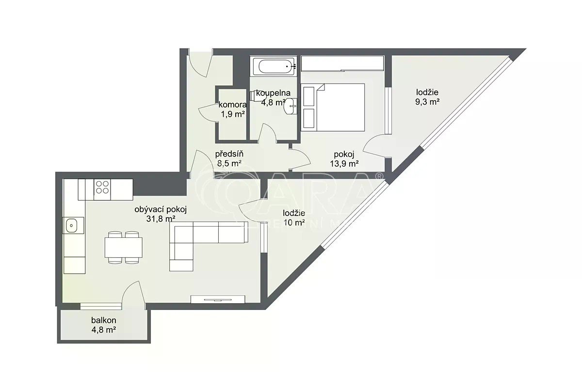 Nabízíme ke koupi byt 2+kk o nadstandardní podlahové ploše 65,8 m2, která je ještě doplněna dvěma lodžiemi 10 m2 a 9,3 m2 a dále ještě balkonem dalších 4,8 m2. K tomu všemu navíc sklep o velikosti 3,9 m2 a rozšířené parkovací stání. Celkem tedy získáte komfortních téměř 94 m², které vám poskytnou prostor i pohodlí, jaké běžně nabízejí byty 3+kk. Byt se nachází ve 3. nadzemním podlaží velmi dobře udržovaného domu se dvěma výtahy. Obě lodžie jsou navíc zasklené a umožňují tak jejich celoroční využití - třeba jako domácí kancelář, relaxační zónu nebo posilovnu. Samozřejmostí je kuchyňská linka se spotřebiči, vestavěné skříně a také praktická komora. Byt může zůstat i vč. veškerého nábytku, takže k nastěhování by vám postačily pouze osobní věci. Horní Měcholupy patří mezi žádané pražské lokality především díky své skvělé občanské vybavenosti a množství zeleně. Lokalita nabízí vše potřebné v pěší dostupnosti - školy, školky, polikliniku, poštu, obchody i sportovní areály. Na oblíbené pivo si můžete zajít do Hostivaru a odpočinout v nedalekém Hostivařském lesoparku s přehradou. Dopravní dostupnost je vynikající - vlaková zastávka Horní Měcholupy vás spojí s centrem Prahy za 17 minut, autobus navazuje na metro Háje či Skalka. Pokud vás tato nabídka zaujala, neváhejte mne kontaktovat.