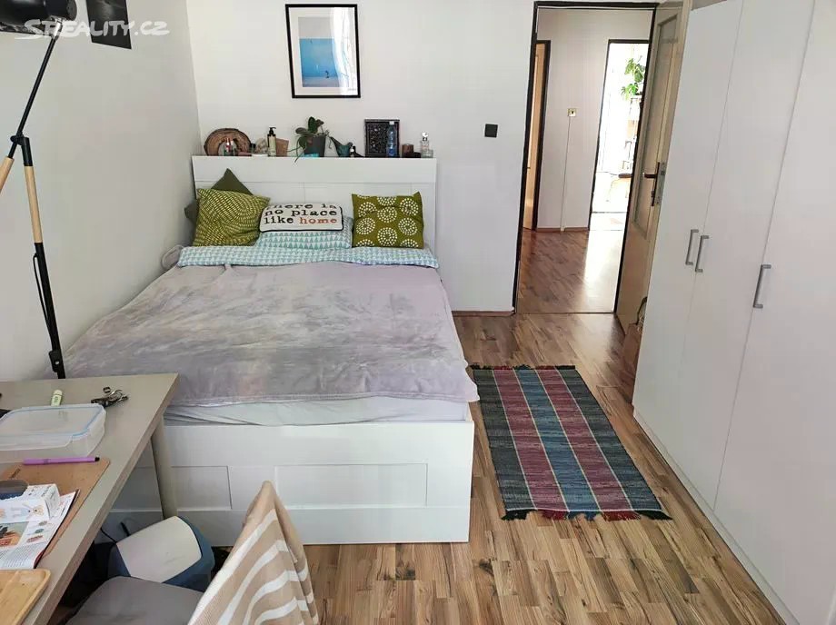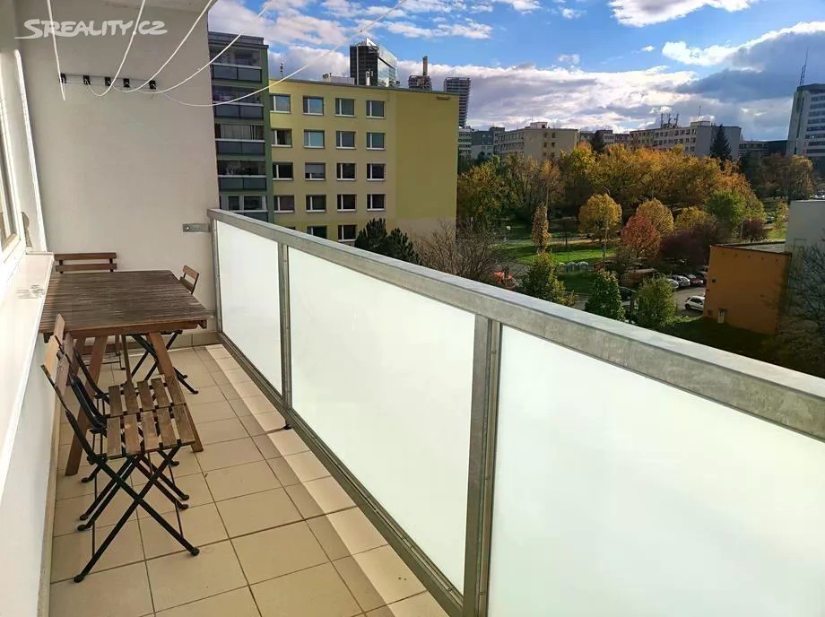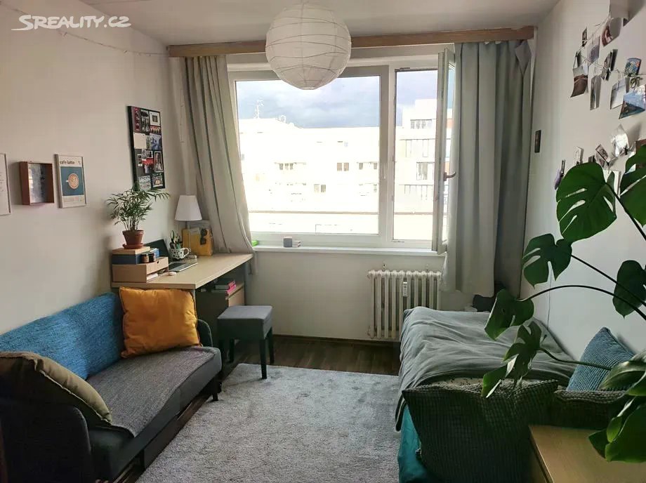 Jedná se o světlý byt s balkonem v 6. patře panelového domu, který se nachází u metra Pražského povstání. Je vybavený kuchyňskou linkou se sporákem, lednicí, pračkou a základním nábytkem (některý nábytek na fotkách je současných nájemníků). Oddělené pokoje. Na podlaze jsou plovoucí podlahy a dlažba. Koupelna s vanou, WC je samostatně. Komora. Plastová okna. Kabelová TV. Kauce i provize činí 23.000, Kč.