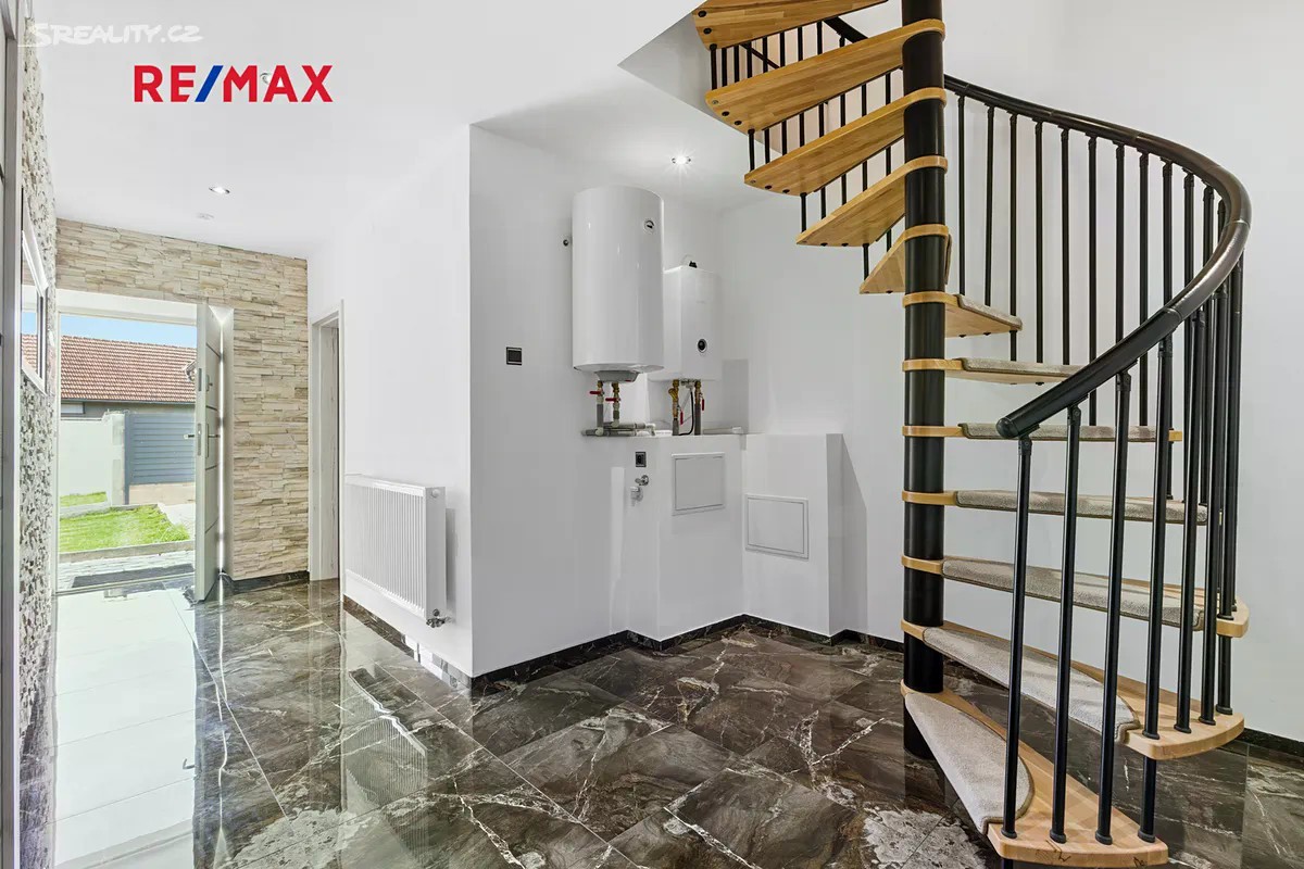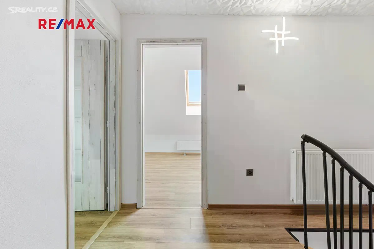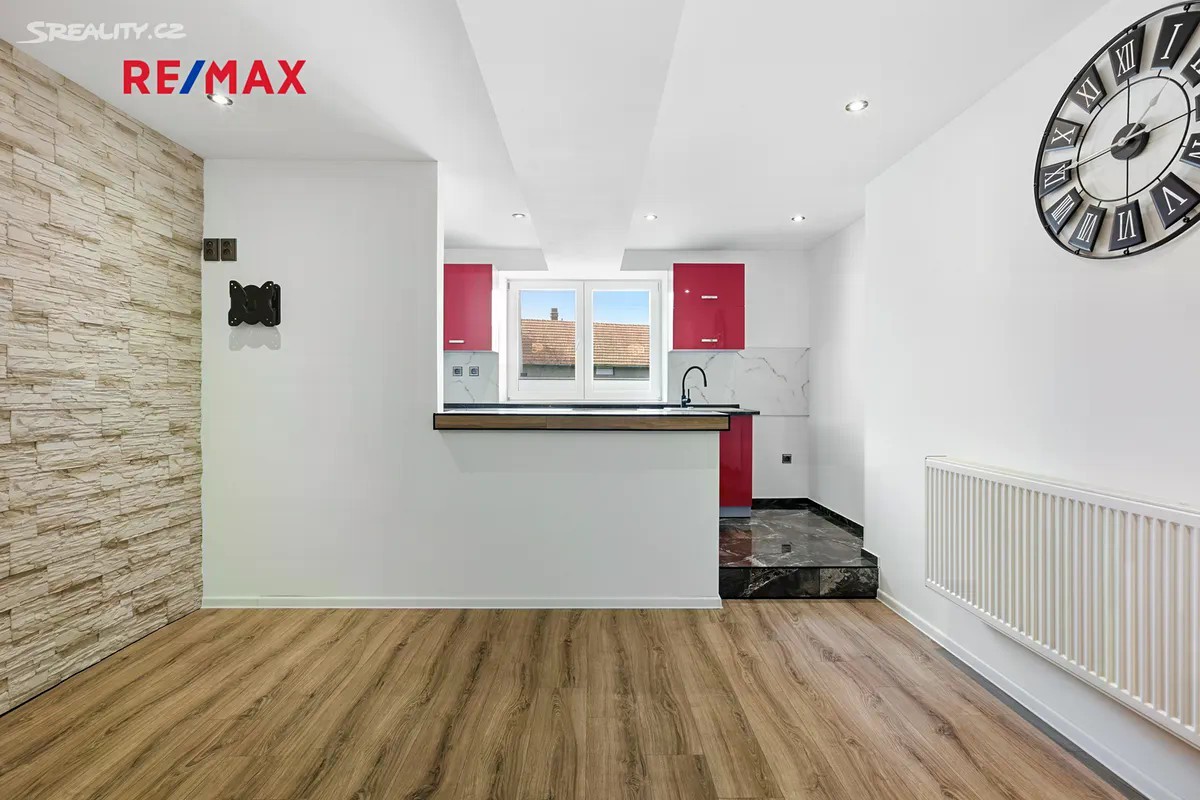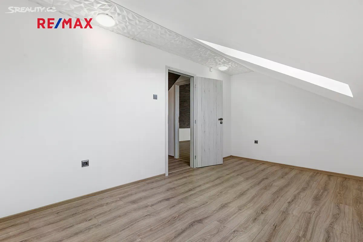 Nabízím k prodeji mezonetový byt 3+kk o celkové ploše 96 m² se zahradou 129 m² v obci Brník, část Oleška. Byt se nachází uprostřed tří sousedních jednotek v domě, který prošel kompletní rekonstrukcí a byl zkolaudován koncem roku 2024. V přízemí se nachází obývací pokoj s kuchyňským koutem o ploše 26,80 m². Součástí prodeje je rozkládací rohová sedačka a kuchyňská linka v červeném provedení - bez spotřebičů. Dále je zde chodba o velikosti 16,33 m² a koupelna se sprchovým koutem a WC o rozloze 4,19 m², vybavená velkoformátovou dlažbou v elegantním designu. V patře je chodba (5,43 m²), ložnice (15,58 m²) a prostorný pokoj (23,57 m²). Jednotlivé místnosti propojuje točité schodiště. Podlahy jsou laminátové, v chodbě a kuchyni je dlažba. Topení zajišťuje elektrický kotel se zásobníkem na teplou vodu o objemu 80 litrů. Byt má okna Velux s trojskly o rozměru 140 × 90 cm, bezpečnostní vstupní dveře, samostatné měření elektřiny a vody a jímku o objemu 9 m³. Jedna z vnitřních stěn domu je obložena přírodním kamenem, který celému objektu dodává příjemný, moderní vzhled. Parkování je možné před domem nebo přímo na zahradě. Obec Brník (součást Olešky) je menší, klidná lokalita obklopená přírodou, vzdálená přibližně 30 minut jízdy od Prahy a asi 10 minut od Říčan. V místě je základní škola otevřená od září 2025, mateřská škola, obchod se smíšeným zbožím a zastávka autobusu s přímým spojením do Prahy i Říčan. V okolí jsou lesy, cyklostezky i možnosti pro volnočasové aktivity. Pokud hledáte moderní a útulné bydlení v tichém prostředí s kouskem zahrady a dobrou dostupností do Prahy, tenhle byt vás zaujme. V případě zájmu si můžete objednat prohlídku a kontaktovat mě pro více informací.