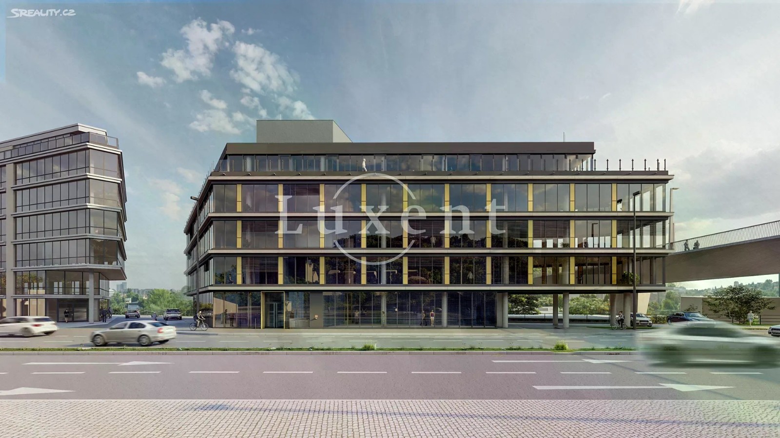 Nabízíme k pronájmu obchodní prostory o výměře 109 m² v moderním administrativním komplexu River Bridge Office Hub, který vzniká v Praze 5 - Hlubočepy v ulici Strakonická. Šestipodlažní budova vyroste přímo na břehu Vltavy a stane se součástí rozvíjejícího se areálu River Business Centre, kde nahradí původní objekt společnosti inSPORTline. Projekt přináší jedinečné propojení klidného říčního prostředí s vynikající dopravní dostupností a nejmodernějšími standardy kancelářských prostor. Velkou výhodou lokality je blízkost plánovaného Dvoreckého mostu, který v budoucnu propojí oba břehy Vltavy a významně zlepší spojení celé oblasti s centrem Prahy i okolními čtvrtěmi. Nové prostory budou k dispozici od 1. března 2026. Zájemci si je mohou rezervovat již během výstavby a přizpůsobit dispozici svým potřebám. K pronájmu jsou určena 2. až 5. nadzemní podlaží s možností pronájmu celého patra nebo jeho části. Flexibilní koncept tak nabízí řešení jak pro menší firmy, tak pro větší společnosti hledající reprezentativní sídlo v perspektivní lokalitě. Parkování je možné pronajmout za 80-115 EUR. River Bridge Office Hub je ideální volbou pro firmy, které hledají moderní a inspirativní pracovní prostředí s výhledem na řeku, vynikající dostupností a velkým potenciálem dalšího rozvoje.