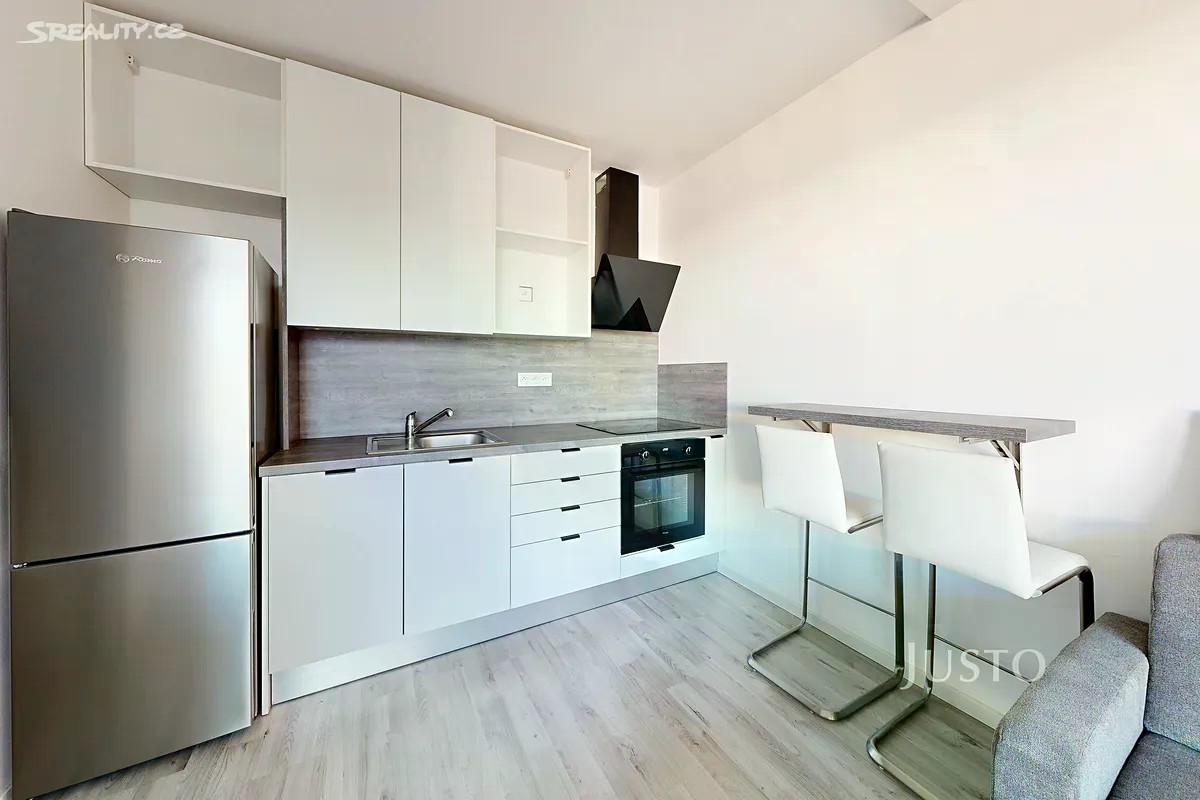 Nabízíme vám k pronájmu novostavbu bytu 1+kk (nebytová jednotka - ateliér) o užitné ploše 32,5 m², k tomu s prostornou lodžií (7,8 m²). Byt se nachází v 5. nadzemním podlaží bytového domu z roku 2024 - projekt Dubičný potok. Byt. Interiér majitelé vybavili nábytkem na míru (vše, co vidíte na fotkách). Jedná se sice o byt s dispozicí 1+kk, ale v obýváku je vkusně vyřešený „spací kout“. Kuchyňská linka je kompletně zařízena - k dispozici je lednice, indukční varná deska, myčka, trouba, mrazák i barový jídelní stůl se dvěma židlemi. V koupelně najdete prostorný sprchový kout, toaletu a místo pro pračku. Lodžie. Dominantou bytu je velká lodžie, která rozšiřuje obytný prostor a poskytuje příjemný výhled do vnitrobloku. Lodžie, stejně jako okna bytu, je orientovaná na západní světovou stranu. Sklep. Přímo na patře naproti bytu je skladovací místnost (sklep) s výměrou 4,6 m². Soukromé parkování. Nechcete v zimě ometat sníh? Jste klidnější, když Váš vůz parkuje na bezpečném místě? K bytu náleží garážové stání v podzemním podlaží. Z auta k výtahu to máte pár kroků. Co jako rezident/nájemník oceníte? Jízdní kolo zaparkujete ve velké kolárně, kde je i nářadí na servis. Ve vedlejší místnosti můžete své kolo opláchnout ve speciálním boxu. Svůj vlastní box na mytí zde mají i domácí mazlíčci. Využít můžete i komunitní gril před domem, nebo fitko pro rezidenty. Lokalita. Autem jste v centru za 5 minut, stejně jako na městském dálničním obchvatu. V okolí se nachází cyklostezka a přímo před domem zastávka MHD. V docházkové vzdálenosti je vlakové a autobusové nádraží i obchodní centrum Mercury CB (cca 25 min. chůze, 10 min. na kole). Byt je volný ihned. Nájemník nehradí žádnou provizi realitní kanceláři. Pokud máte zájem o více informací, nebo prohlídku, vyplňte formulář u inzerátu. Dostanete odpověď s veškerými informacemi do 10 minut na e-mail, který uvedete. Zkontrolujte si, prosím, i složky "Spam" a "Nevyžádaná pošta" - občas se tam e-mail může zatoulat.
