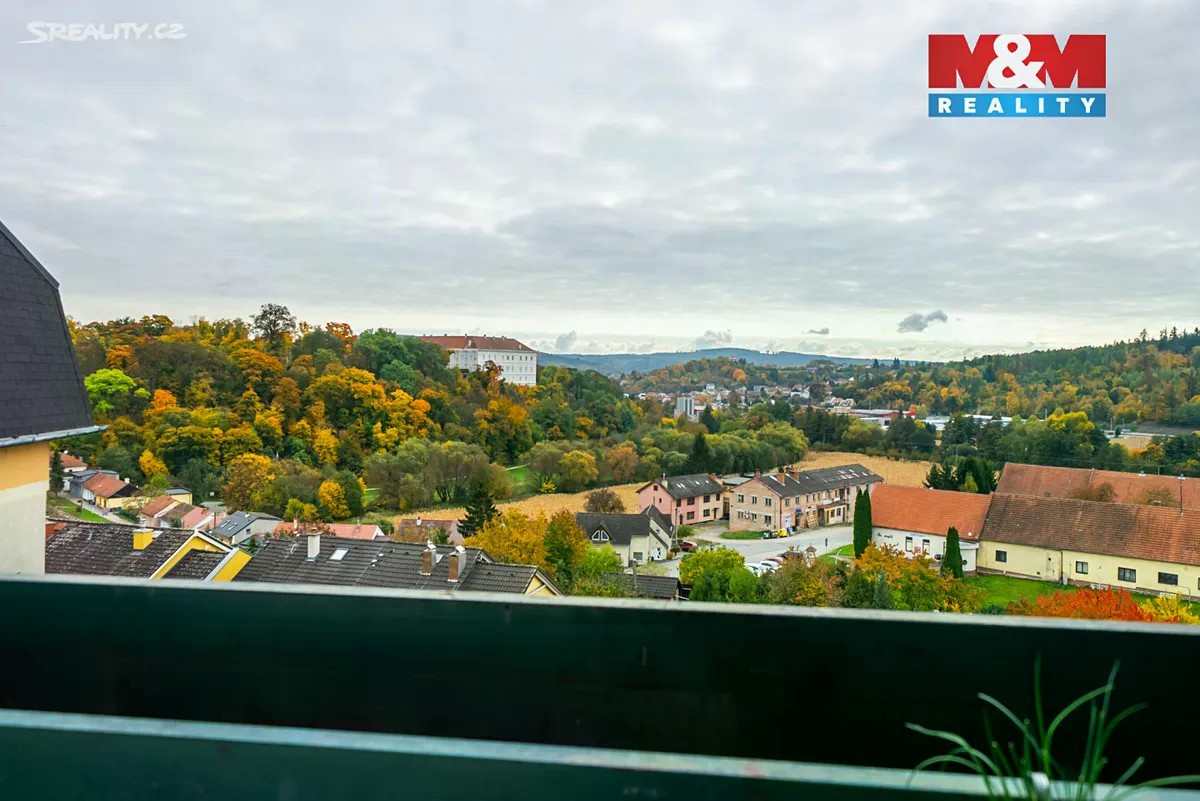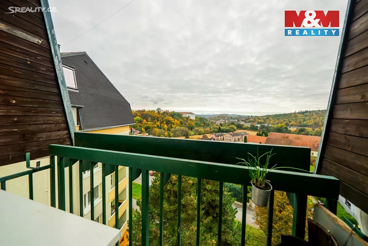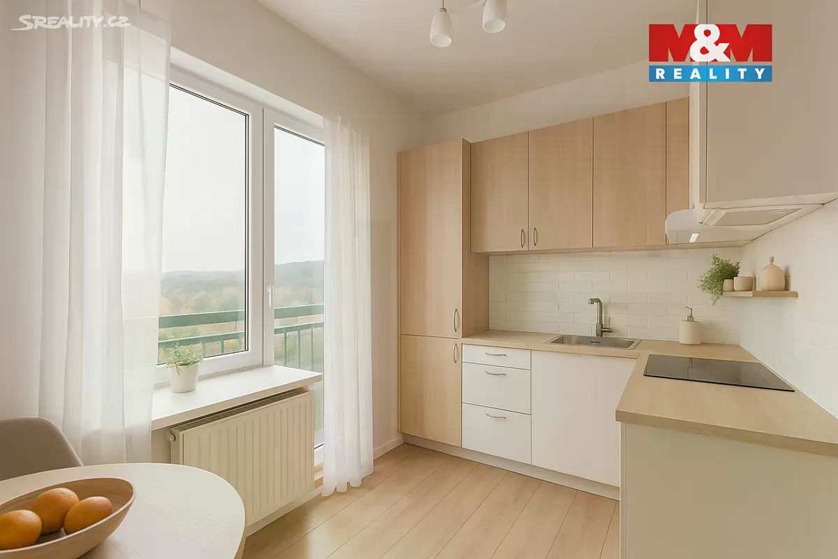 Nabízíme k prodeji mezonetový byt o dispozici 3+kk a celkové ploše 53 m². v pátém, posledním patře domu na ulici Kaštanová v Rosicích. Po vstupu vás přivítá menší předsíň, ze které se dostanete do koupelny se sprchovým koutem a samostatného WC. Kuchyň je částečně oddělená od obývacího pokoje, má přímý vstup na malý balkón, ten sice není velký, ale výhled z něj rozhodně ano. Díky orientaci na jihovýchod je byt krásně prosvětlený po celý den. Po schodech nahoru se dostanete do otevřeného prostoru, který lze jednoduše uzavřít a vytvořit tak další samostatný pokoj. Najdete tu také druhý pokoj, ideální jako ložnici či dětský pokoj.K bytu patří sklep a také komora přímo na patře, takže úložného prostoru je víc než dost.Parkování je zajištěno přímo u domu na veřejném parkovišti. Rosice jsou vyhledávanou lokalitou s výbornou dostupností do Brna a veškerou občanskou vybaveností. Pokud hledáte klidné místo k bydlení s výhledem, který vás jen tak neomrzí, tenhle byt si zaslouží vaši pozornost.