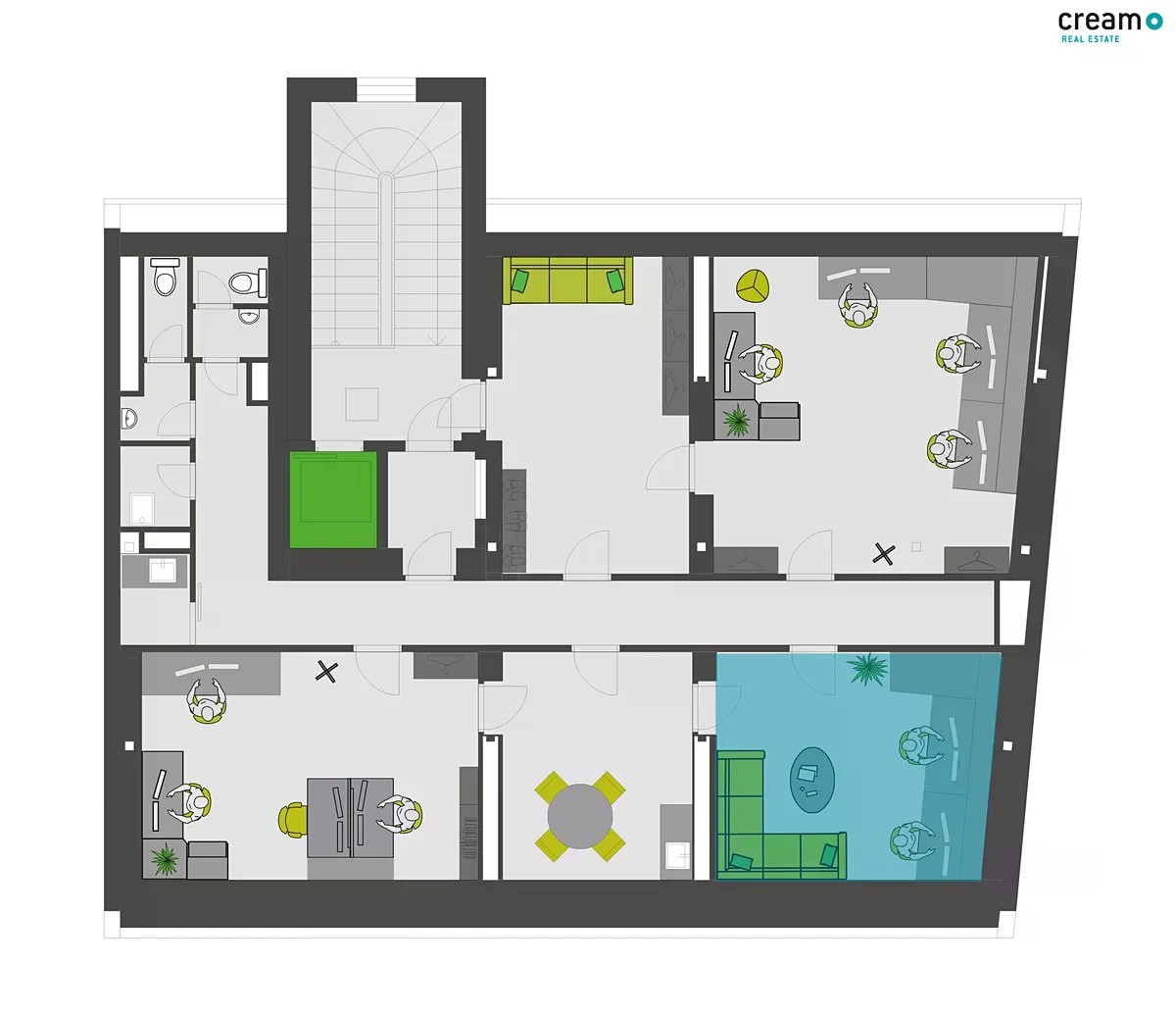 Světlé kancelářské prostory k pronájmu se nachází v komerční budově v Liberci, a to jen pár metrů od autobusového a vlakového nádraží. Kancelář je vybavena zátěžovým kobercem, dále pak vysokými stropy a otevíratelnými okny. Přímo na patře je sociální zázemí a samozřejmě nechybí ani sdílená kuchyňka. Kancelář s výměrou 22 m² se nachází v 5. nadzemním podlaží. Měsíční nájemné činí 3 990 Kč bez DPH (bez energií a služeb). Pronájem je možný od 1.12.2025 Vstup do budovy vede z hlavní ulice. Samozřejmostí je bezbariérový přístup. V objektu je k dispozici výtah. Ve dvorním traktu nemovitosti je možnost parkování pro 12 vozidel. Budova se nachází v těsné blízkosti centra města, na autobusové a vlakové nádraží se dostanete za 5 minut. V sousedství je úřad práce i sídlo městské policie. CREAM Real Estate poskytuje služby v oblasti realit, developmentu, facility managementu, energií a asset managementu. Hlavní provozovna sídlí ve Zlíně v bývalém areálu Baťovy továrny, který z významné části vlastní a revitalizuje. Všechny budovy má v osobním vlastnictví.