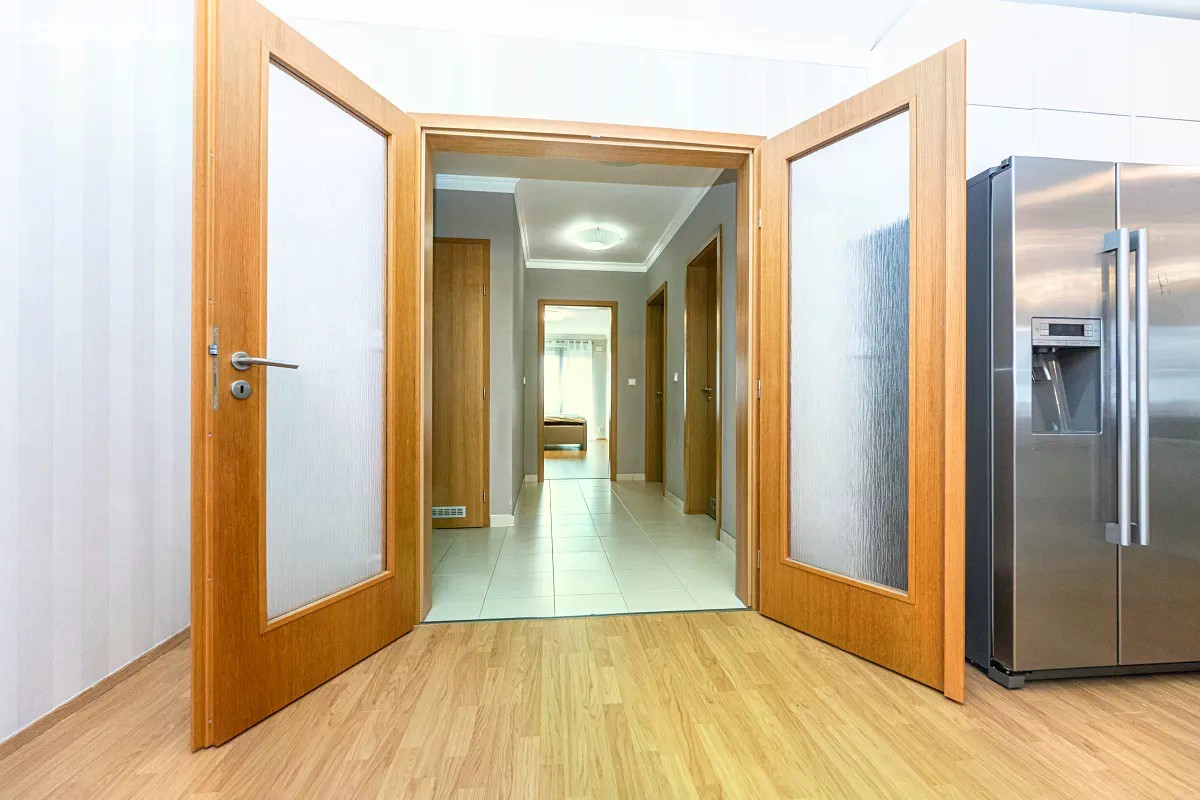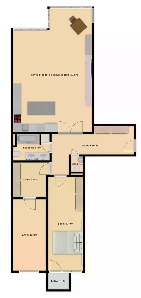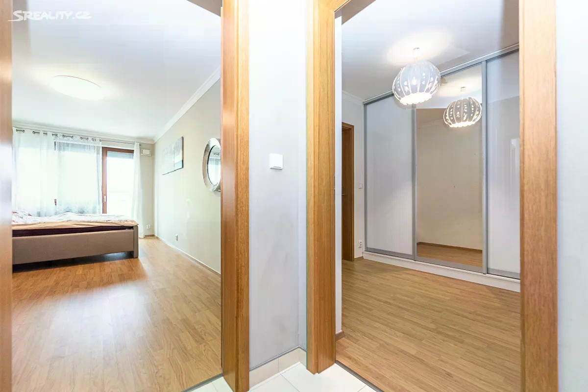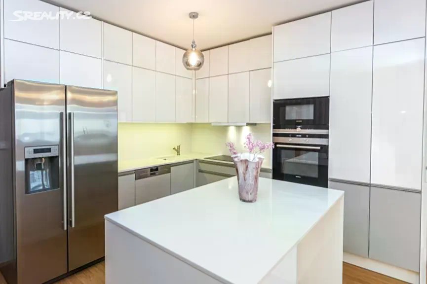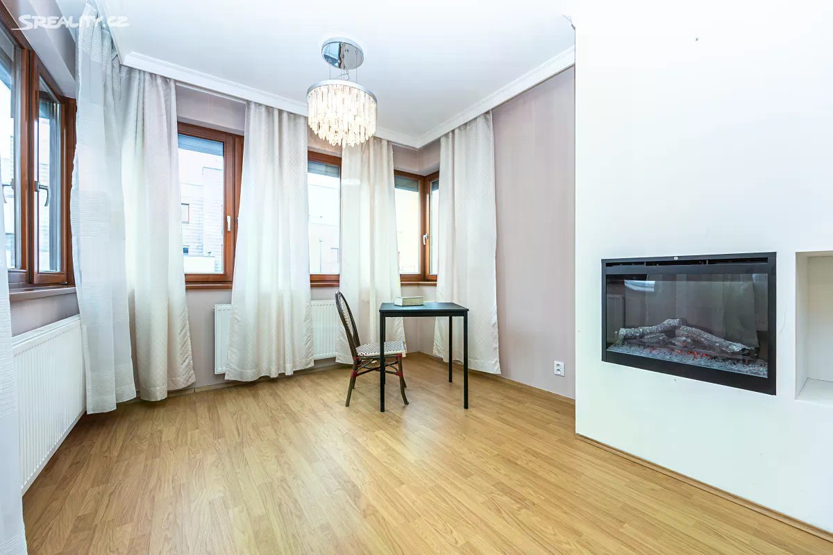 Nabízíme k prodeji prostorný a světlý byt 3+kk o ploše 116 m² s balkonem, sklepem a velkým garážovým stáním. Byt se nachází v 5. patře (6. nadzemním podlaží) cihlového domu z roku 2012 s výtahem. Je velmi světlý a vzdušný, s výborně řešenou dispozicí, nadstandardními úložnými prostory, sklepem a garážovým stáním větší velikosti (pro invalidy). Lze vyměnit za menší byt s doplatkem. Pro bližší informace prosím volejte. Dispozice bytu: Obývací pokoj orientovaný na severozápad a je díky množství oken mimořádně světlý a vzdušný. Nepravidelný půdorys místnosti vytváří přirozený základ pro členění prostoru - pomocí nábytku nebo dalších designových prvků zde lze vytvořit oddělené funkční zóny, jako je relaxační část, pracovní kout, jídelní stůl nebo útulné posezení u elektrického krbu. Plně vybavená kuchyň s ostrůvkem plynule navazuje na obývací pokoj. Celková plocha obývacího pokoje s kuchyňským koutem je 50,5 m². Dále jsou v bytě dva pokoje orientované na jihovýchod - hlavní ložnice o ploše 18 m² má vstup na menší balkon (1,9 m²), dětský pokoj (14 m²) je přístupný přes prostornou šatnu (7 m²) s vestavěnou skříní. Po celé délce chodby je umístěna velká vestavěná skříň až ke stropu, která poskytuje mimořádné úložné možnosti. Koupelna (5,0 m²) je vybavena dvěma umyvadly, vanou, toaletou a prostorem pro pračku a sušičku. Další toaleta je k dispozici samostatně. K bytu náleží sklepní kóje (2,65 m²) a lze dokoupit zvětšené garážové stání v podzemní garáži (není podmínkou). Celková plocha jednotky podle prohlášení vlastníka činí 116 m² (z toho byt 111,92 m², balkon 1,95 m² a sklep 2,65 m²). Měsíční zálohy činí 5 649 Kč, z toho 1 146 Kč tvoří příspěvek do fondu oprav. Výhody bytu: • Výjimečně prostorný obývací pokoj 50,5 m² (včetně kuchyňského koutu) • Promyšlená dispozice s možností oddělených zón • Elektrický krb pro příjemnou atmosféru • Skvělá dopravní dostupnost - blízko metra • Sklep a prostorné garážové stání Byt je vhodný pro rodinu s dětmi, která ocení praktické uspořádání, úložné prostory i klidné zázemí v širším centru Prahy, stejně jako pro ty, kdo hledají variabilní, reprezentativní a zároveň útulné prostředí. Majitel si vyhrazuje právo prodat nemovitost nejvýhodnější nabídce. Uvedené informace mají pouze informativní charakter a mohou se v průběhu inzerce změnit.