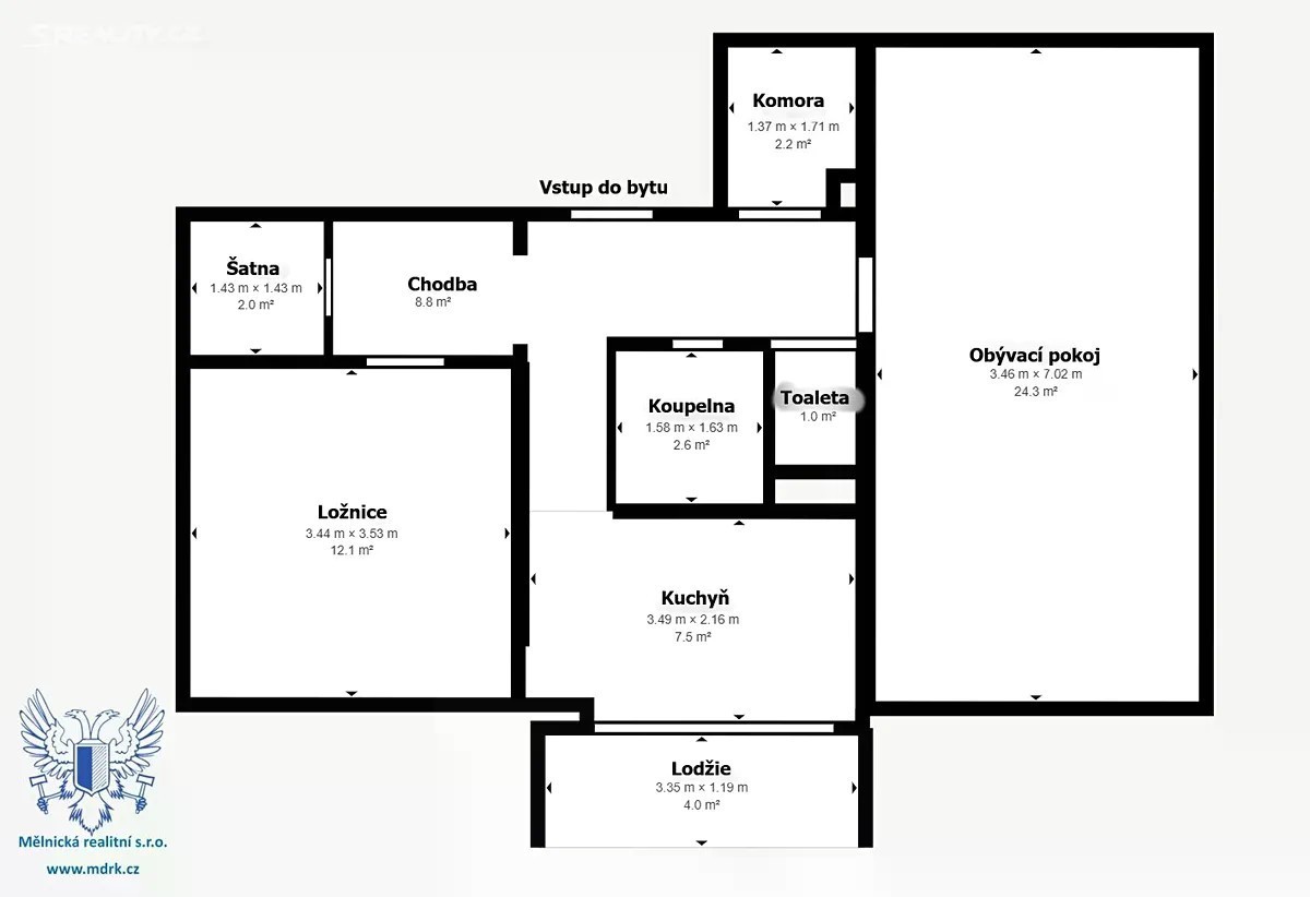 Exkluzivně vám nabízíme k pronájmu prostorný byt 2+1 v ulici Pražská na Mělníku. Byt se nachází ve třetím patře panelového domu č.p. 2645, užitná plocha bytu 60 m2 + 4 m2 lodžie. Byt se skládá z chodby, koupelny, toalety, obývacího pokoje, ložnice, komory, šatny, kuchyně a lodžie, součástí pronájmu je také sklep v suterénu. Byt je v dobrém stavu, koupelna a kuchyň prošla před cca 10 lety rekonstrukcí. Vybavení kuchyně: kuch. linka, el. trouba, plynový sporák, digestoř, dřez, lednice, myčka, mikrovlnná trouba. V koupelně nalezneme vanu a umyvadlo, toaleta se nachází v samostatné místnosti. Byt je částečně vybaven pračkou, gaučem, komodou, botníkem a dvěma televizemi. Okna plastová, v domě dva výtahy. Výhodná poloha s docházkovou vzdáleností do centra města, v těsné blízkosti najdeme školu, školku, nemocnici, zastávku PID, obchody, restaurace, sportoviště, park atd. Nájem 13 000,-Kč/měsíc, zálohy na služby včetně elektřiny, plynu a pojištění 7000,-Kč/měsíc. Kauce 26 000,-Kč. Volné ihned. Majitel si vyhrazuje právo vybrat nájemce, dle jím zvolených kritérií.