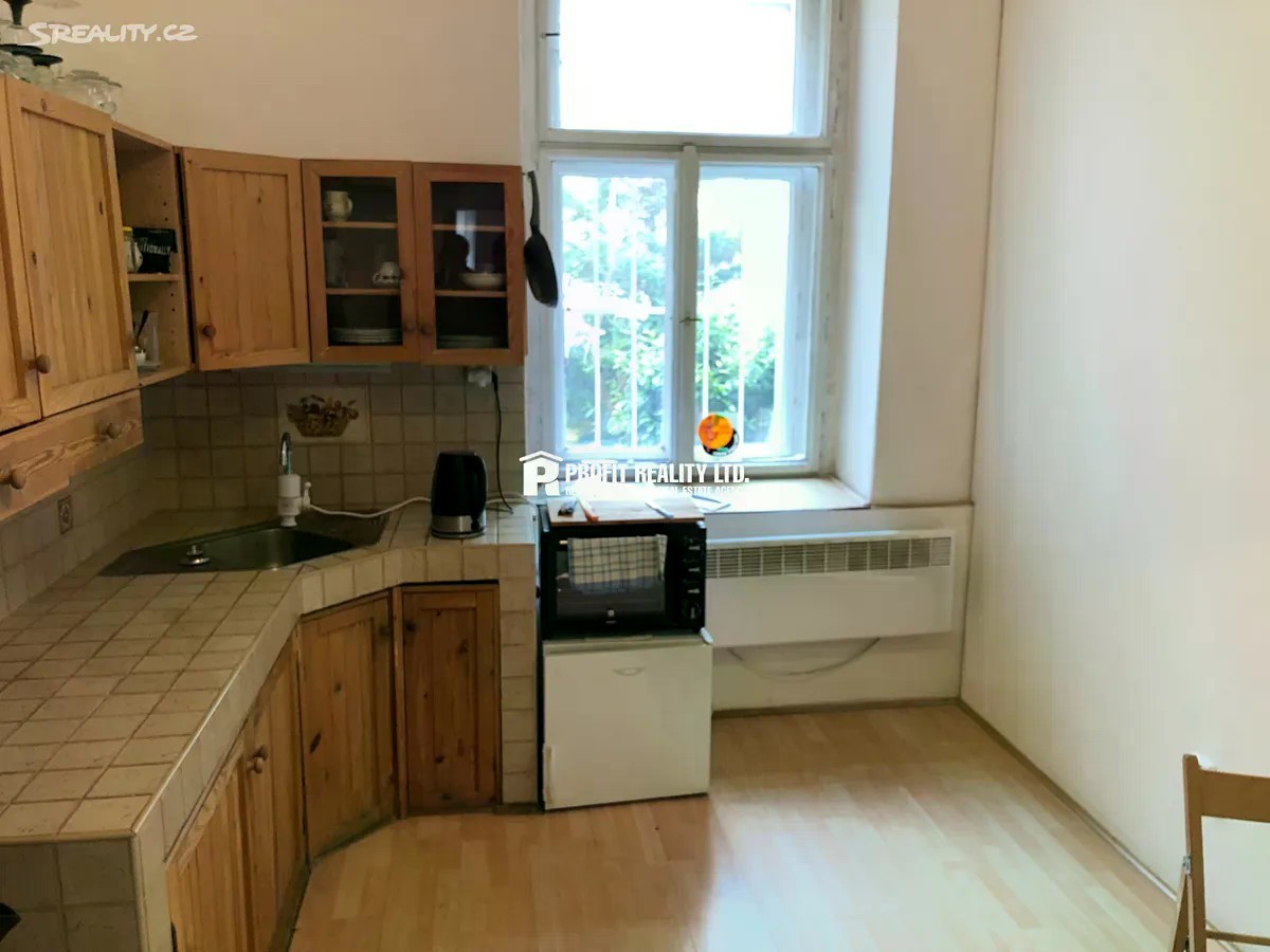 K pronájmu byt o velikosti 1+1, 48m², umístěný v 1. NP činžovního domu v historickém centru Prahy. Byt se skládá z pokoje orientovaného na východ do ulice, kuchyně orientované na západ do vnitrobloku, koupelny s wc a předsíně. Byt je zařízený kuchyňskou linkou, plovoucí podlahy, v koupelně dlažba, sprchovací kout. Dobrá dopravní dostupnost, zastávka tramvaje Národní divadlo a Myslíkova, metro Národní třída. Byt je volný ihned, elekřina se převádí na nájemce, kauce a provize je ve výši nájmu.