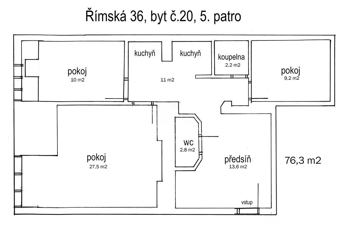 Pronájem bytu 3+1 74 m² Římská, Praha - Vinohrady