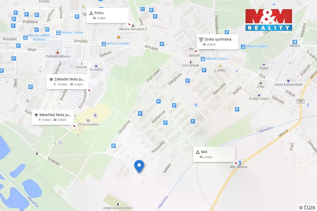 Nabízíme k prodeji byt 1+kk o užitné ploše 36,4 m², který se nachází ve druhém nadzemním podlaží cihlového domu v Milovicích - Mladá. Dům prošel v roce 2010 kompletní rekonstrukcí a nachází se v klidné lokalitě nedaleko lesoparku, ideální místo pro klidné bydlení. Byt je v hezkém stavu a prodává se včetně části vybavení - kuchyňské linky se spotřebiči (lednice, myčka, el. trouba, varná deska) a skříní. Dispozice bytu zahrnuje vstupní chodbu, koupelnu s podlahovým vytápěním, vanou a toaletou, obývací pokoj s kuchyňským koutem. Okna jsou plastová se žaluziemi, orientovaná na západní stranu. Vytápění zajišťuje vlastní elektrický kotel, ohřev vody bojler. K bytu náleží vyhrazené parkovací stání na vlastním pozemku přímo před domem. Nízké měsíční náklady - zálohy na služby včetně vodného činí 1.808,-Kč + elektřina za vytápění a vaření dle spotřeby. Pokud plánujete financování hypotékou, zdarma vám zajistíme nabídku s výhodnou úrokovou sazbou. V případě zájmu nás kontaktujte.