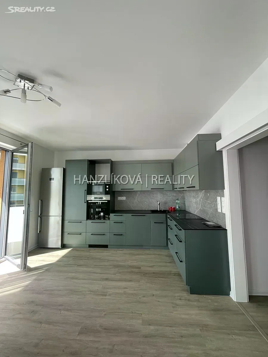 Nabízíme k pronájmu nadstandardní bytovou jednotku č. 98 - byt 3+kk s prostornou terasou ve 3. NP v nově zkolaudovaném bytovém domě "Nová Čtvrť Branišovská". Bytová jednotka se nachází ve druhém ( 3. NP) podlaží budovy C II a skládá se z těchto místností : vstupní hala ( předsíň) - 10,6 m2, wc se sprchovým koutem- 2,5 m2, koupelna s toaletou a vanou o výměře 5,4 m2, obývací pokoj s částečně odděleným kuchyňským koutem o výměře 30,5m2, pokoj 14,3 m2, ložnice 17,3 m2. Z obývacího pokoje s kuch. koutem je vstup na prostornou terasu, která má výměru 20,2m2. celý byt včetně terasy je orientovaný mimo silnici. Vytápění domu zajištěno dálkově z tepláren - aktuálně nejvýhodnější varianta. Dům se nachází na hezkém, klidném místě, s příjemným výhledem do zeleně. V těsné blízkosti domů se nachází vysokoškolské koleje a lesopark Stromovka, kde najdete turistické stezky, které také slouží jako cyklostezky. Kousek od domu jsou zastávky MHD, nákupní centrum a veškerá občanská vybavenost. K bytu náleží garážové parkovací stání se sklepem za úplatu 1.000,-Kč Pronájem bez domácích mazlíčků. Byt je k dispozici ihned po domluvě.