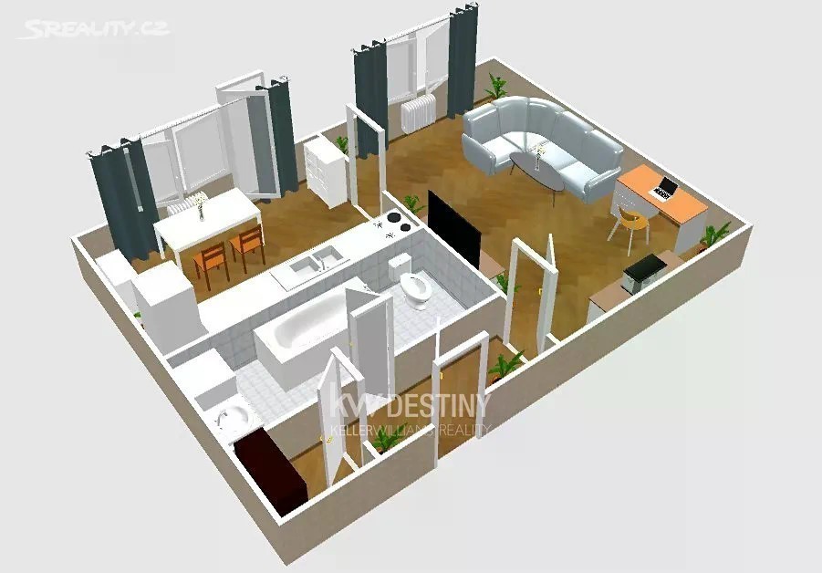 Ve výhradním zastoupení majitele nabízím k prodeji byt v osobním vlastnictví, který prošel velmi vkusnou kompletní rekonstrukcí. Navíc tento byt je skoro plně vybaven, dalším plusem je, že se nachází v pěkné a vyhledávané lokalitě města Most v ulici Jaroslava Vrchlického. Byt o dispozici 1+1 má výměru 35,7 m2 a nachází se ve 4.NP panelového domu, který prochází neustálou revitalizací. Co se týká rekonstrukce domu, tak ta proběhla v roce 2019, kdy se dělalo vše podstatné - fasáda spolu se zateplením za použití polystyrénu o tloušťce 10 cm, oprava střechy a instalace výtahu. O dva roky později proběhlo vymalování vstupního vestibulu. Byt je výborně dispozičně řešen. Z prostorné předsíně se vchází do koupelny s WC a dále do obývacího pokoje s navazující kuchyní. Z kuchyně je vstup na malý balkónek. Tento byt, jak je již zmíněno v popředí, prošel kompletní rekonstrukcí. Jádro koupelny a WC je zděné, vkusně renovované v roce 2018 obklady a dlažbou, kde je velká vana, skříňka s umyvadlem a zrcadlem, pračkou a toaletou. Kuchyňská linka včetně kombinovaného sporáku a digestoře je stará 5 let. V kuchyni je dále stůl, barové židle a policový set. V obývacím pokoji je dominantní rohová sedačka s úložným prostorem a vysouvacím lůžkem, dále obývací stěna. V celém bytě je položena laminátová plovoucí podlaha z roku 2015. Nové rozvody elektřiny včetně jističů dělané v roce 2018. Voda + odpad jsou v plastovém provedení. Plastová okna z roku 2015 a jsou opatřena roletami. V předsíni se nachází potřebný kumbál, pro uložení různých věcí. Celý byt je vymalován z roku 2023 a je v pěkném stavu připraven ihned k nastěhování. Velikosti místností jsou: kuchyně 8,74 m2, obývací pokoj 17,44 m2, předsíň 2,8 m2, koupelna s WC 3,06 m2, kumbál 2,57 m2 a sklepní kóje: 1,09 m2. Výhodami tohoto bydlení jsou: parádní lokalita, výbava, parkoviště přímo u domu. Náklady na bydlení jsou ve výši 3 284 Kč, včetně fondu oprav v hodnotě 1 334 Kč. V případě více zájemců bude nemovitost obsazena nejlepší nabídce dle preferencí majitele. Na prohlídce se budu se těšit.