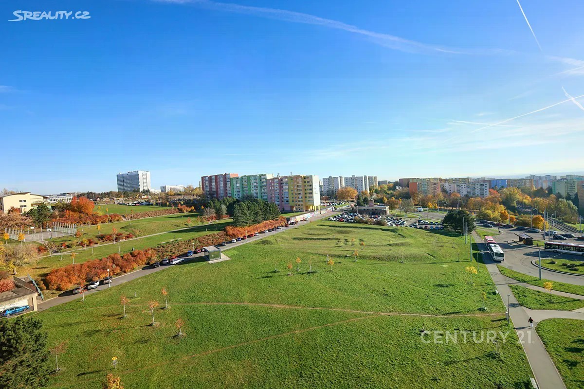 Nabízíme Vám k pronájmu zrekonstruovaný, vkusný a částečně zařízený byt 2+kk v panelovém domě na adrese Brno, Starý Lískovec, Mikuláškovo náměstí v 9. NP/ 9. Celková plocha 46 m2 včetně lodžie 5 m2. Byt je orientován na východ. Obývací pokoj s kuchyňským koutem 20 m2, ložnice 10,6 m2, předsíň 6 m2, koupelna s WC 3 m2. Součástí bytu je vkusná kuchyňská linka s indukční varnou deskou, troubou, digestoří, lednicí s mrazákem. Obývací část doplňuje sladěná nábytková sestava v přírodním tónu, která působí útulně a nabízí dostatek úložného prostoru i pro televizor. K dispozici je i stůl a tři židle, dvě křesla, stolek a postel. Ložnice není vybavena. Koupelna je vybavena sprchovým koutem, toaletou, umyvadlem a topným žebříkem. Je zde umístěna i pračka kombinovaná se sušičkou. Dále v bytě využijete úložný prostor v komoře a spíž. Na případném doplnění nebo částečném odstranění vybavení se dá domlouvat. V domě je zaveden internet (není součástí nájmu). Ústřední dálkové vytápění. Podle PENB má dům energetickou třídu E. Parkování na ulici u domu. V okolí najdete veškerou občanskou vybavenost, lékárnu, polikliniku, dva supermarkety. Nákupní centrum Campus Square se nachází jednu zastávku tramvaje č. 8 od domu. Lokalita s dobrou dostupností do centra Brna. Nedaleko se nachází Kampus Masarykovy univerzity a Fakultní nemocnice v Bohunicích. Stanice tramvají, trolejbusů a autobusů MHD Osová se nachází do 2 minut od domu. Výborné napojení na dálnici D1 Majitel preferuje nájemníky na dlouhodobý pronájem. Vhodné pro páry nebo rodinu s jedním dítětem, pracující nebo studenty. Domluvte si prohlídku s makléřem. Byt je volný.