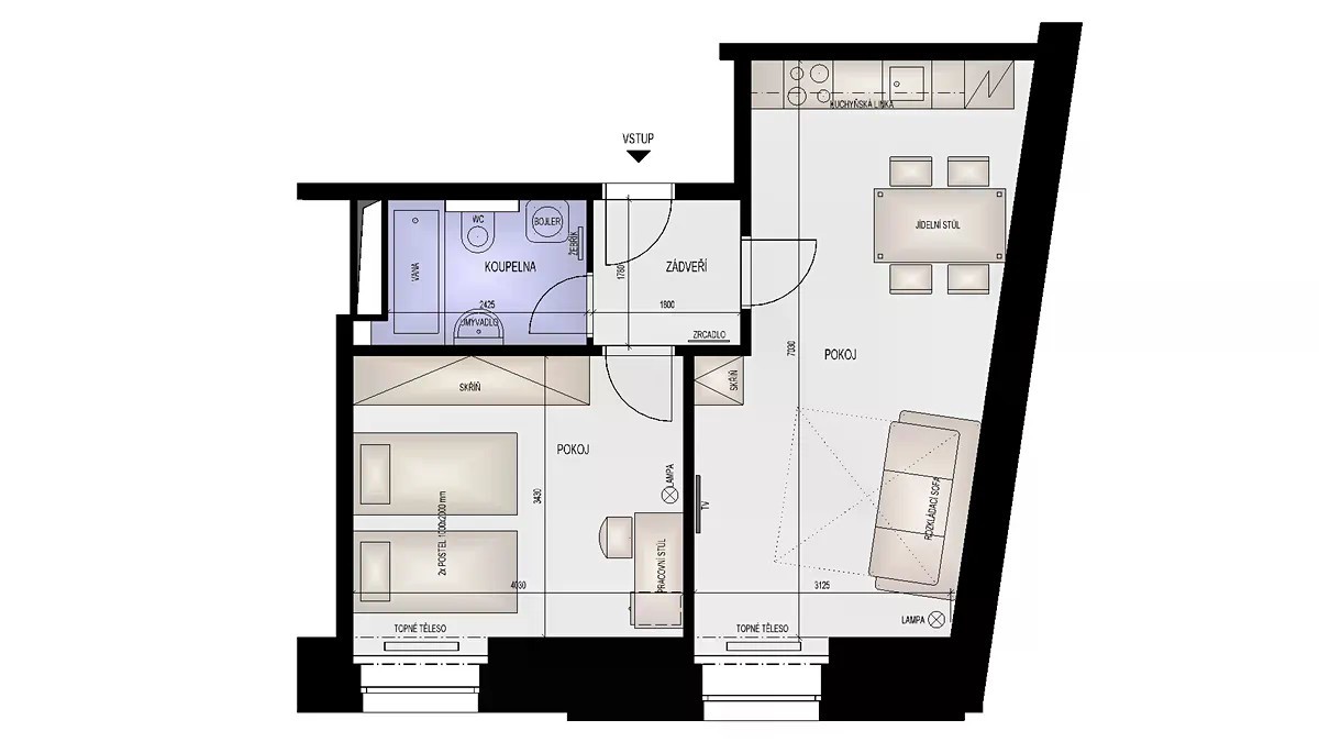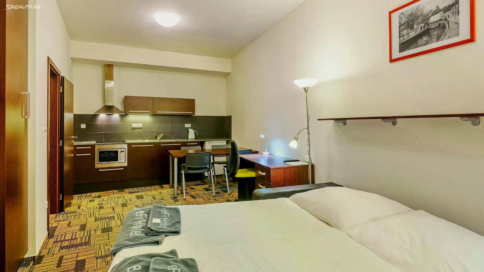 Investiční příležitost bez starostí. Prodej investičního bytu 2+kk (ateliér) v osobním vlastnictví v prvním patře víceúčelové budovy v blízkosti centra Brna. Byt je pronajat na dobu 3 let společnosti eFi Palace, s.r.o. (stávající vlastník, možnost prodloužení) s garantovaným nájemným 17 tisíc Kč měsíčně (204 tisíc Kč ročně). Celková výměra bytu je 45,1 m2. Předsíně 3,2 m2, koupelna 4,3 m2, pokoj s kuchyňským koutem 23,47 m2. Ložnice se samostatným vstupem z předsíně je o výměře 14,12 m2. Okna jsou situovány na severní stranu do ulice Bratislavská. Vybavení bytu tvoří kuchyňský kout s kuchyňskou linkou v barvě Wenge a pracovní deskou Egger v barvě Jura černá se sklokeramickou varnou deskou Indesit VRM 640 MC se čtyřmi varnými zónami, komínový odsavač Elica Missy 60/IX, vestavěná mikrovlná trouba Baumatic BMC253SS s grilem a horkovzdušnou troubou, podstavná lednice indesit TFAA 10. V předsíni je vestavěná skříň. Koupelna s vanou 150 cm, umyvadlem a WC, koupelnová skříňka LeBon, barva Wenge. Topení ústřední s radiátory, ohřev teplé vody elektrickým inteligentním ohřívačem OKHE SMART se zásobníkem teplé vody. Bytová okna jsou s izolačními trojskly.
